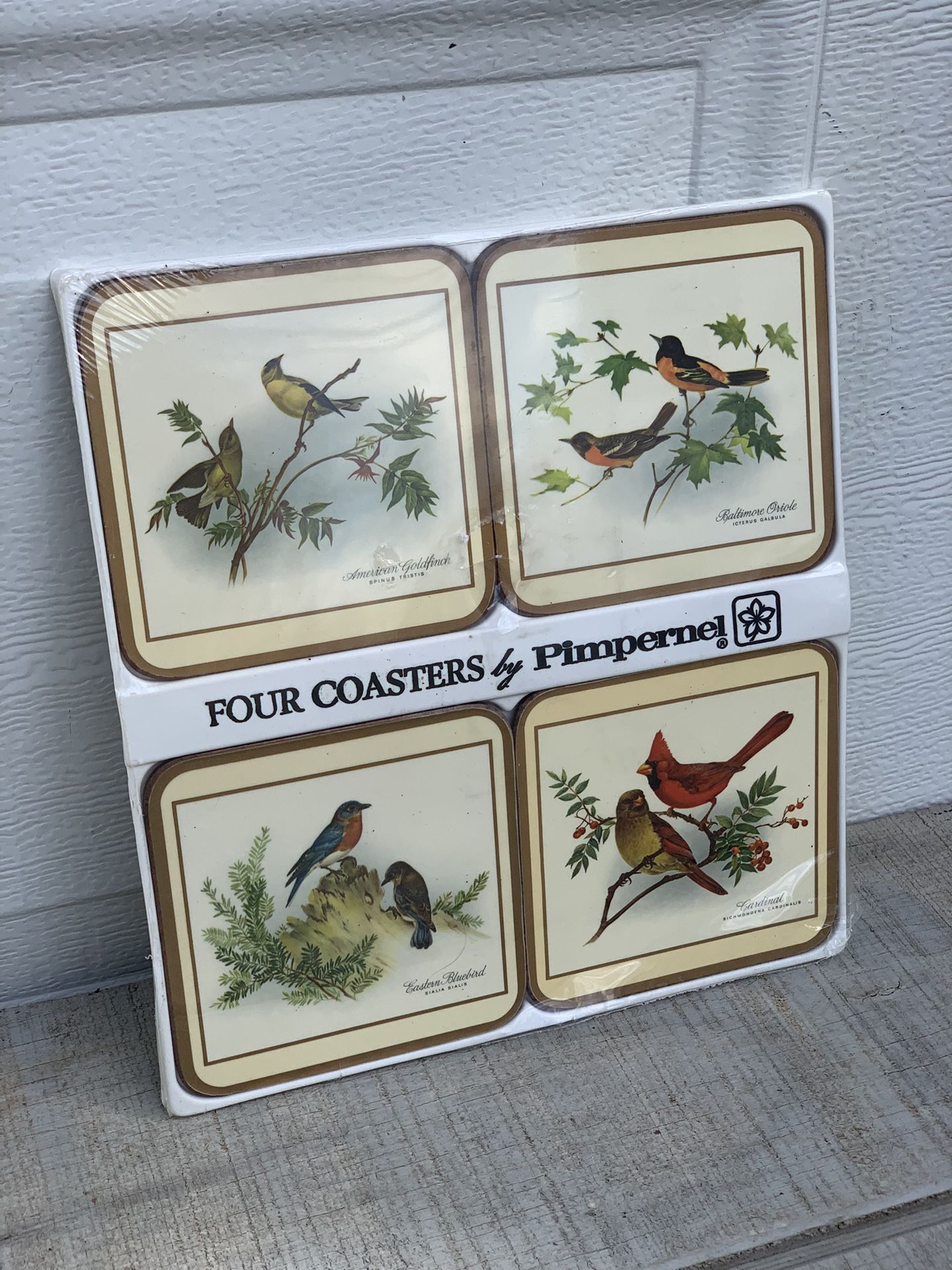4 Vintage Pimpernel Bird Drink Coasters Set Cork Back 4” Square