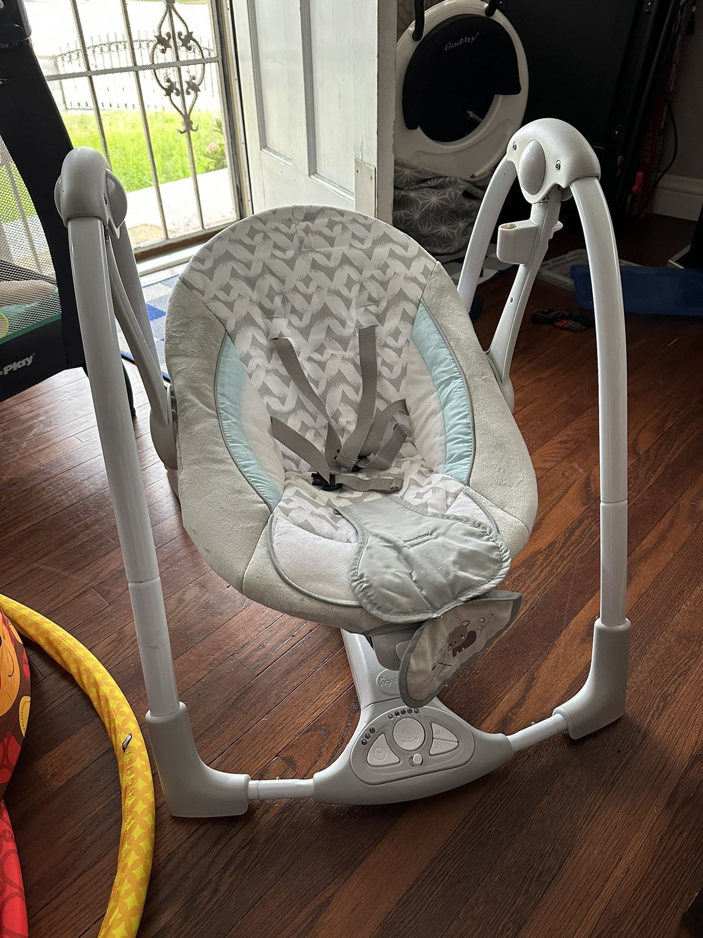 In very good condition used it a handful of time battery operated. Folds great for small spaces and portable to take back and forth
