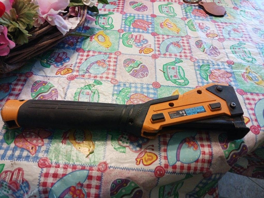 Bostic slap stapler. I believe it uses 3/8 staples roofers loss is your gain. I have no need for it asking 10 retails for $32. Make me an offer.