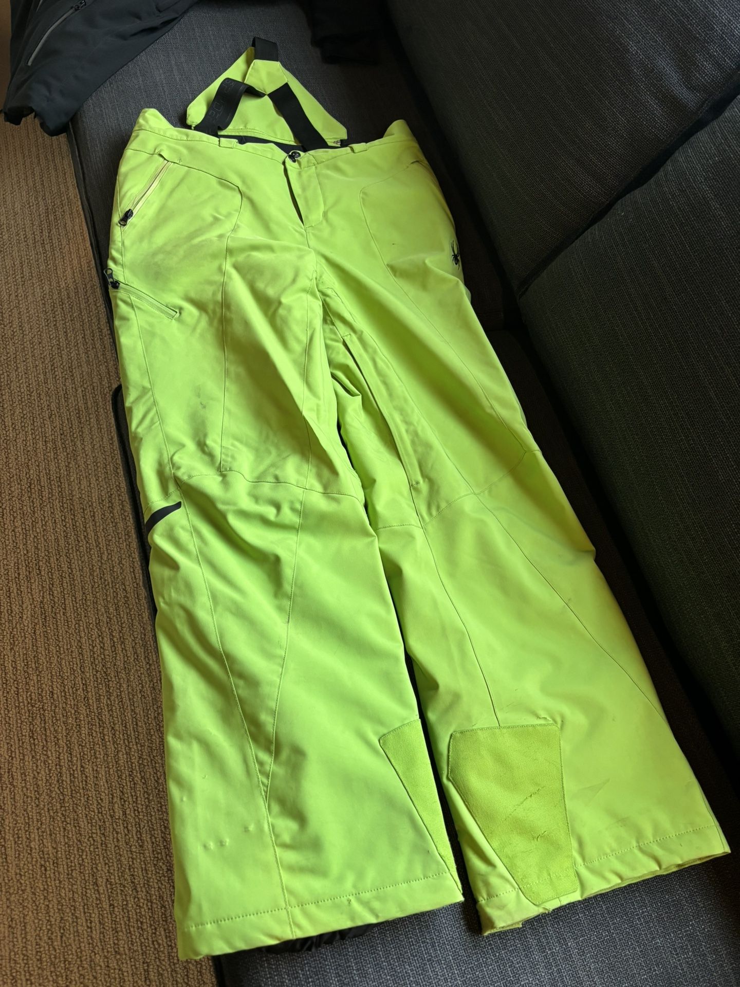Spyder’s top of the line insulated waterproof ski pants. Warm and rugged. Removable suspenders. Thigh ventilation zippers for temperature control. Size 20 US.