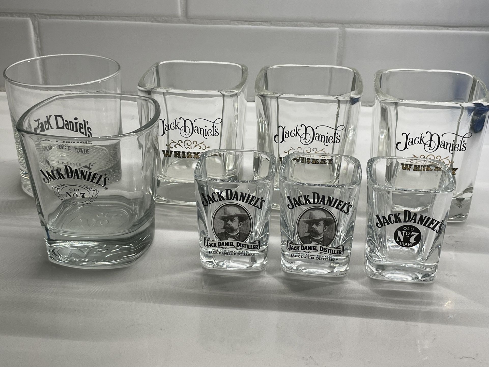 Jack Daniels Whiskey glasses collectible eight rocks and shot glasses lot