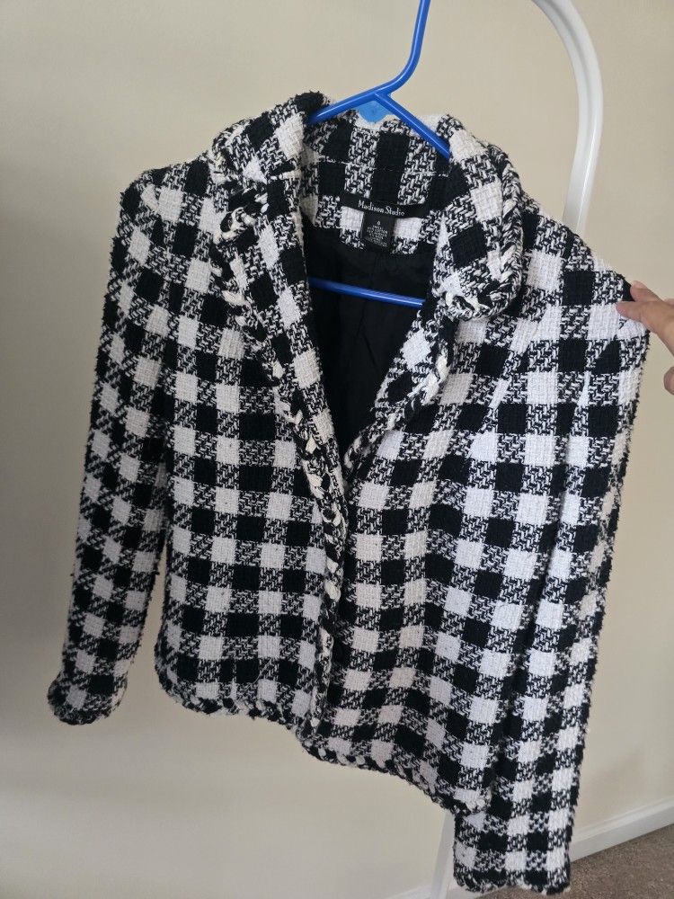 Brand :Madison Blazer , washed and sanitized. Size 4 but can fit a medium 34c. I'm a medium and it fits me well