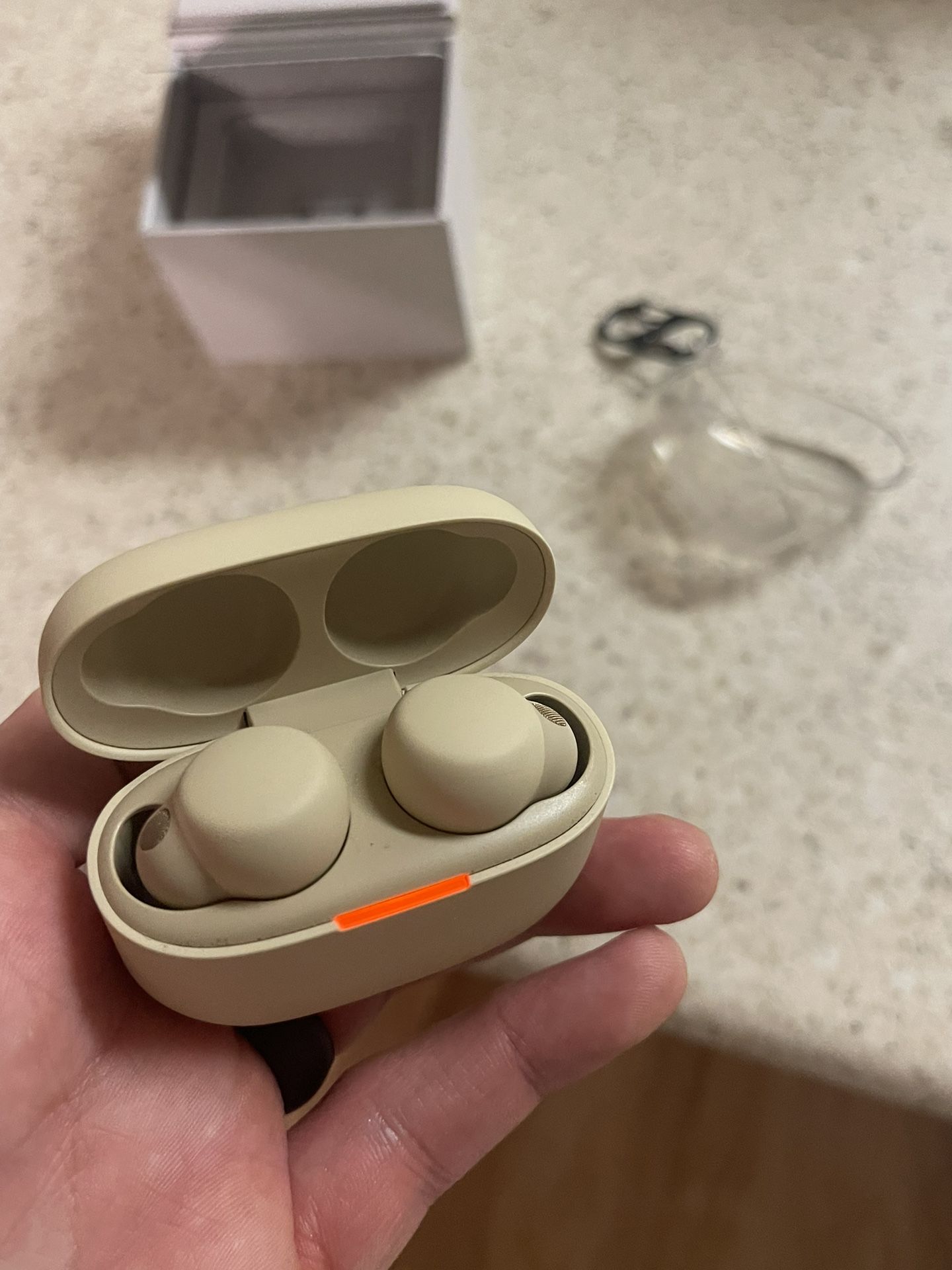 protective case included I really love this pair of ear buds. Rarely used, purchased earlier this August. Was gifted a pair of AirPods early this week. Everything in original box included. Color: Desert Sand Description: Automate your audio experience with ultralight headphones that feature smart technology to connect your online and offline worlds like never before. Seamlessly shift from ambient sound to advanced noise canceling and enable automatic playback that learns from your behavior. LinkBuds S deliver the right sound for whatever world you're in.