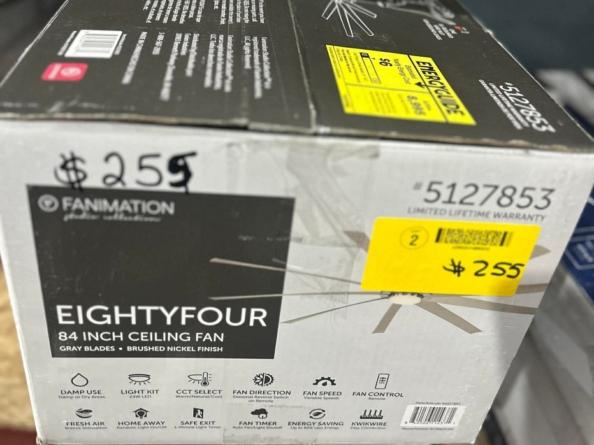 84in Ceiling Fan - Brushed Nickel Finish