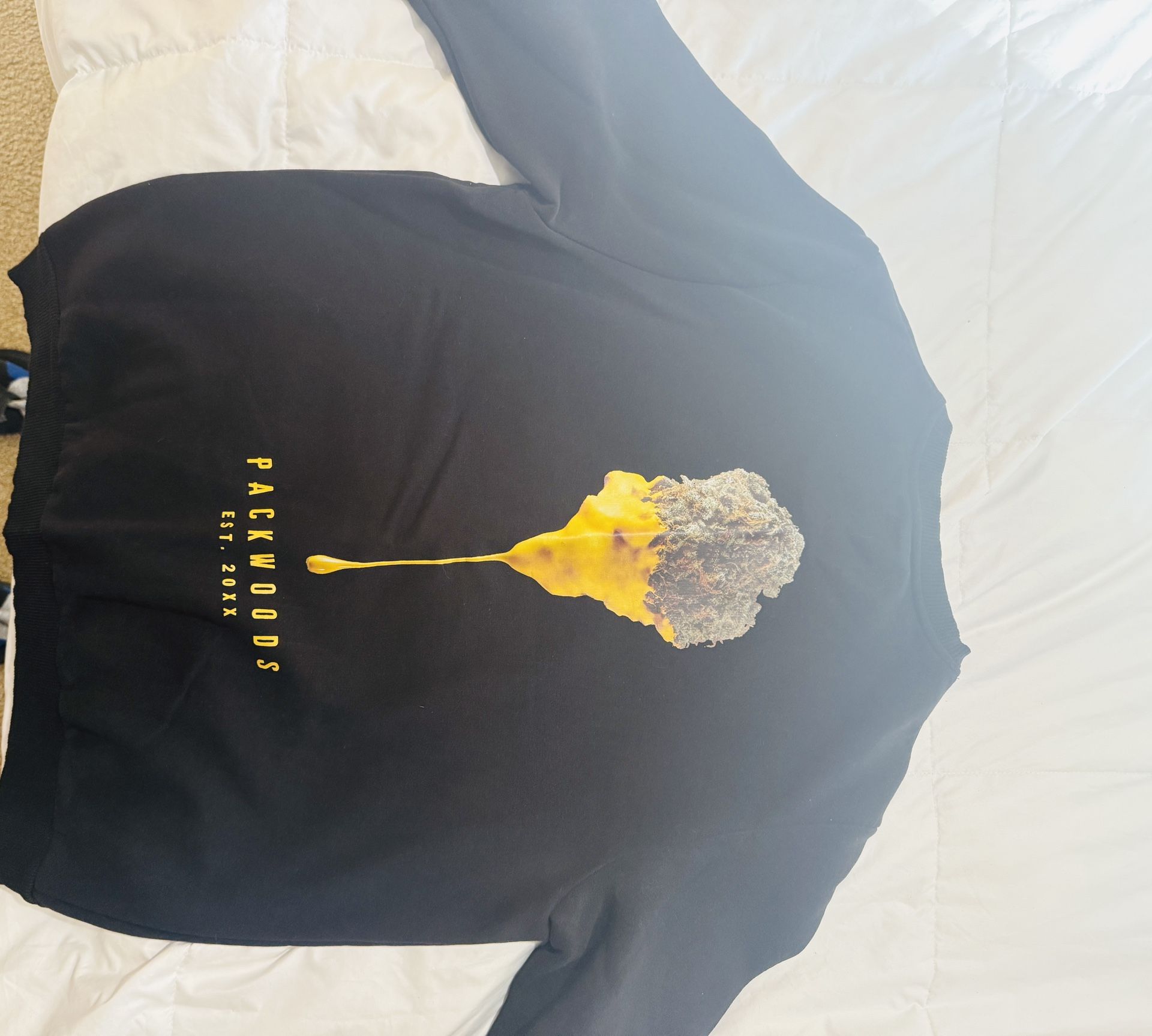 Like new. Worn once! Packwoods sweater. Logo is shiny, no cracks. Shirt is black. No fade!
