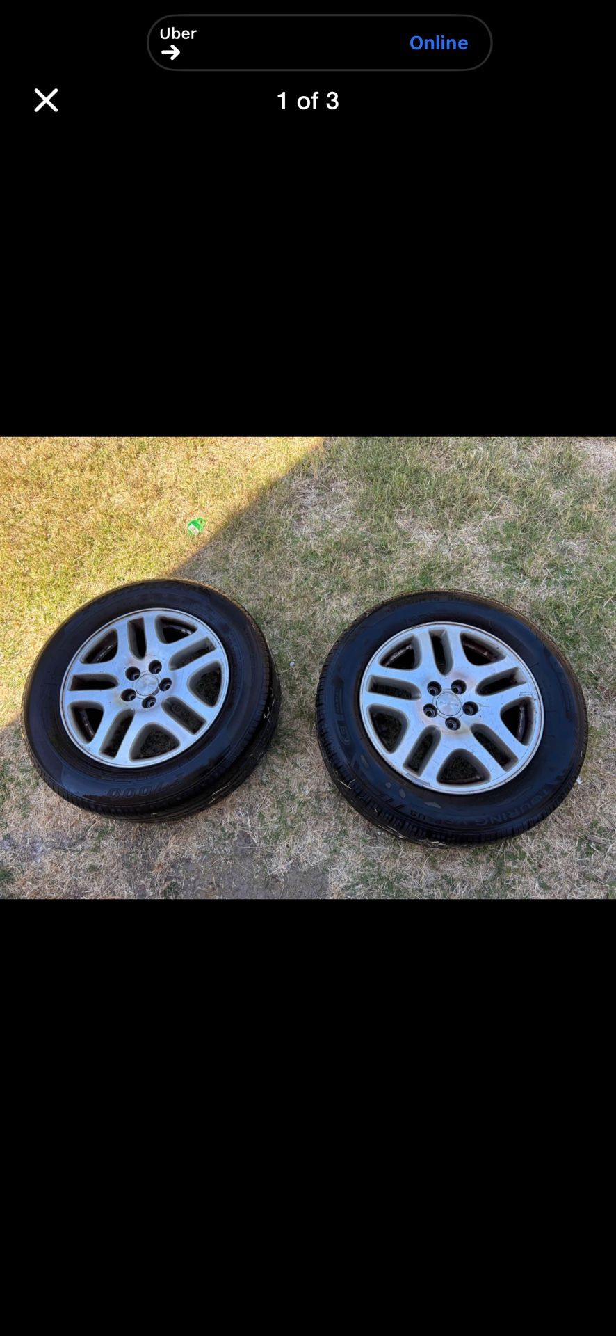 2 tires, Great condition, asking 80$ 5x100 lug pattern tire and rim.