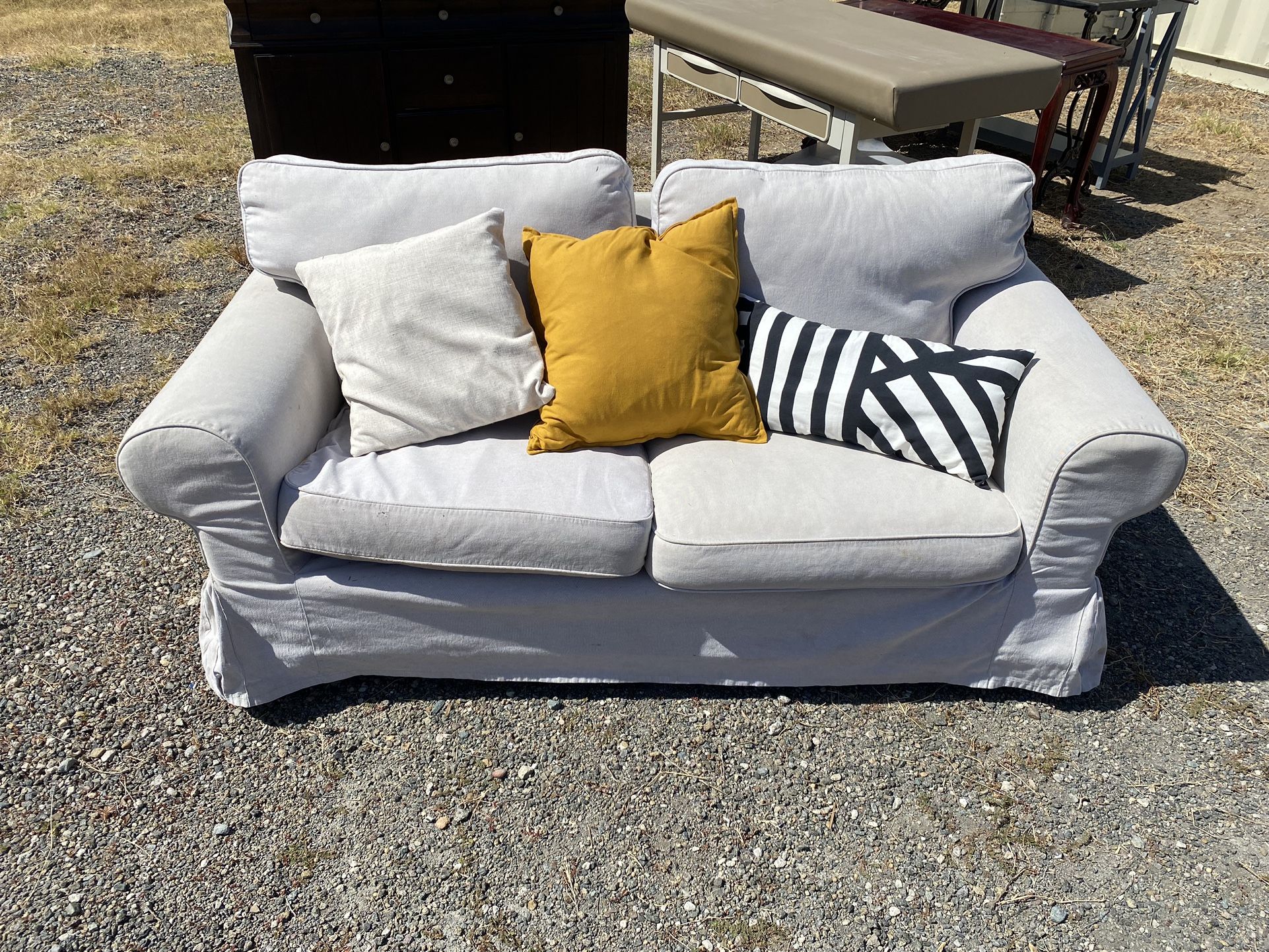 White IKEA loveseat sofa with washable cover.