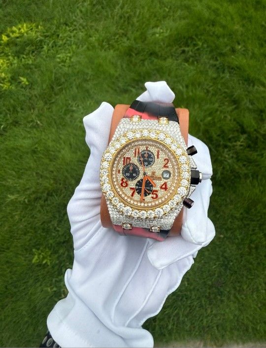 Brand new VVS mossinate bussdown watch +Box/Paper included Passes the diamond tester ✅ Battery powered ✅ ——>r3p<—— ALL sales FINAL Message me if you have any questions. Videos/pictures do no justice