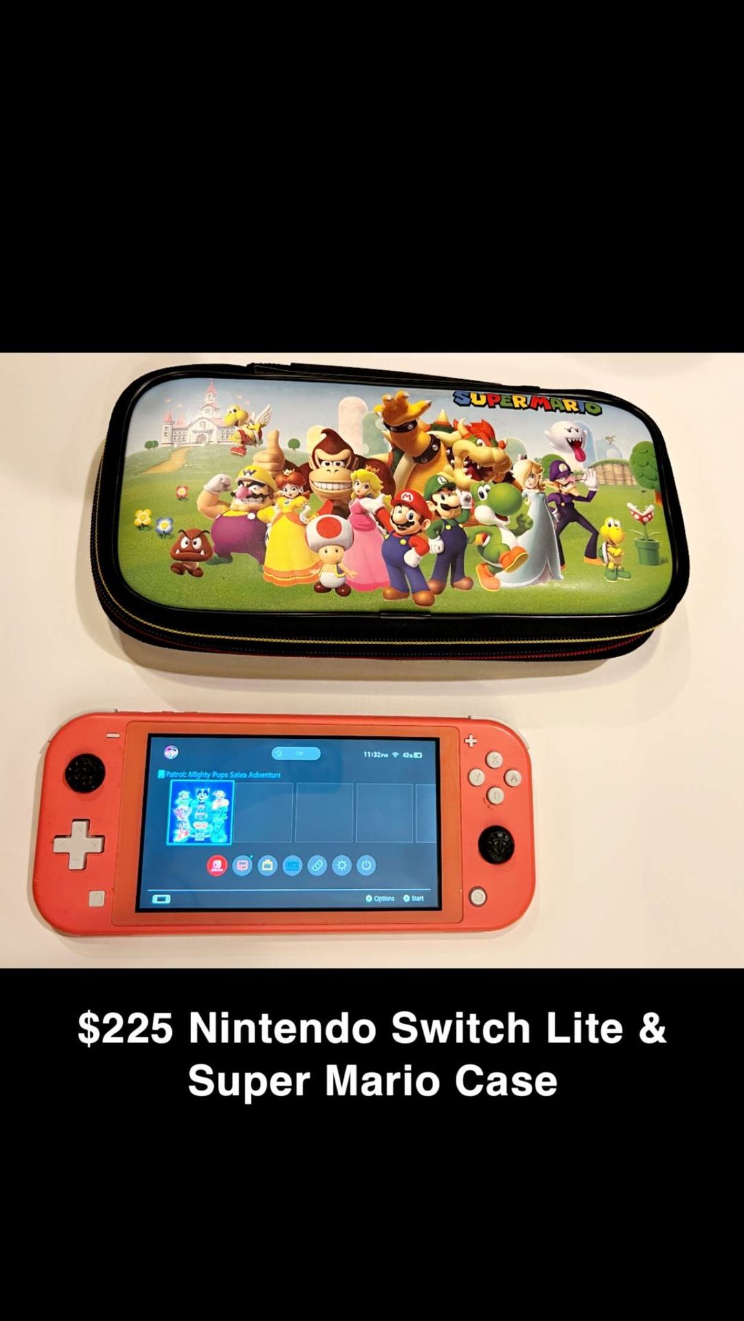 Nintendo switch with case for sale. $180obo, This is our daughters switch with a super Mario case. Make an offer, plan to get rid of it asap. You can message me on here or call or txt (contact info removed). Thank you!