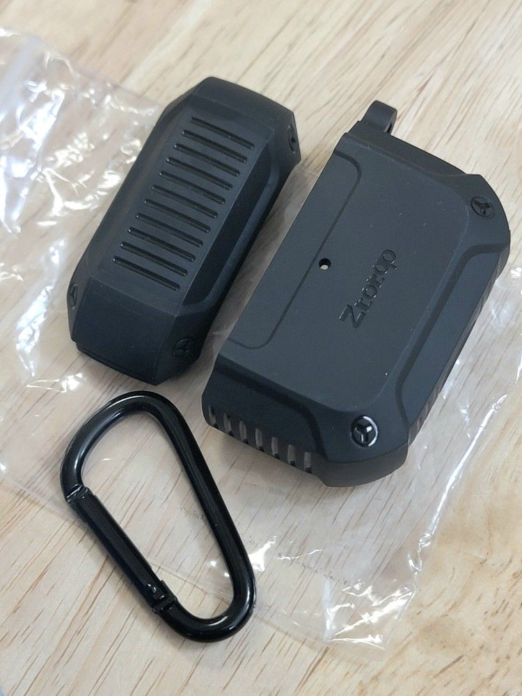 New, unused. Opened just to take pictures. Hard shell design charging case protection, with carabiner. The web images are for the pro, but they share closely similar design & features for reference.