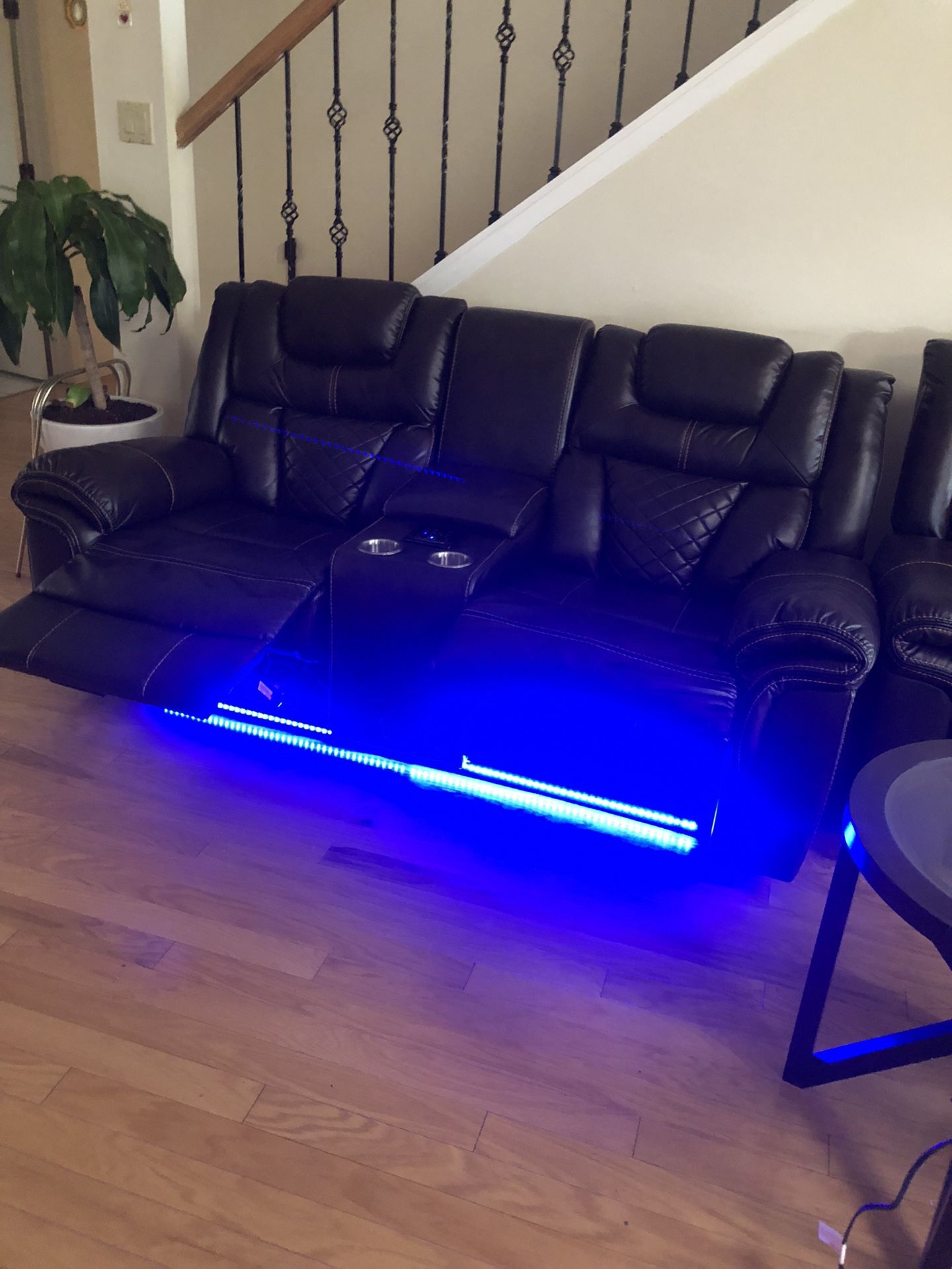 This semi new electrical sofa with blue led and with outstanding loud speakers for family gatherings 🎉 sofa has no problems and no wear and tear. For serious buyers call this number ((contact info removed)).