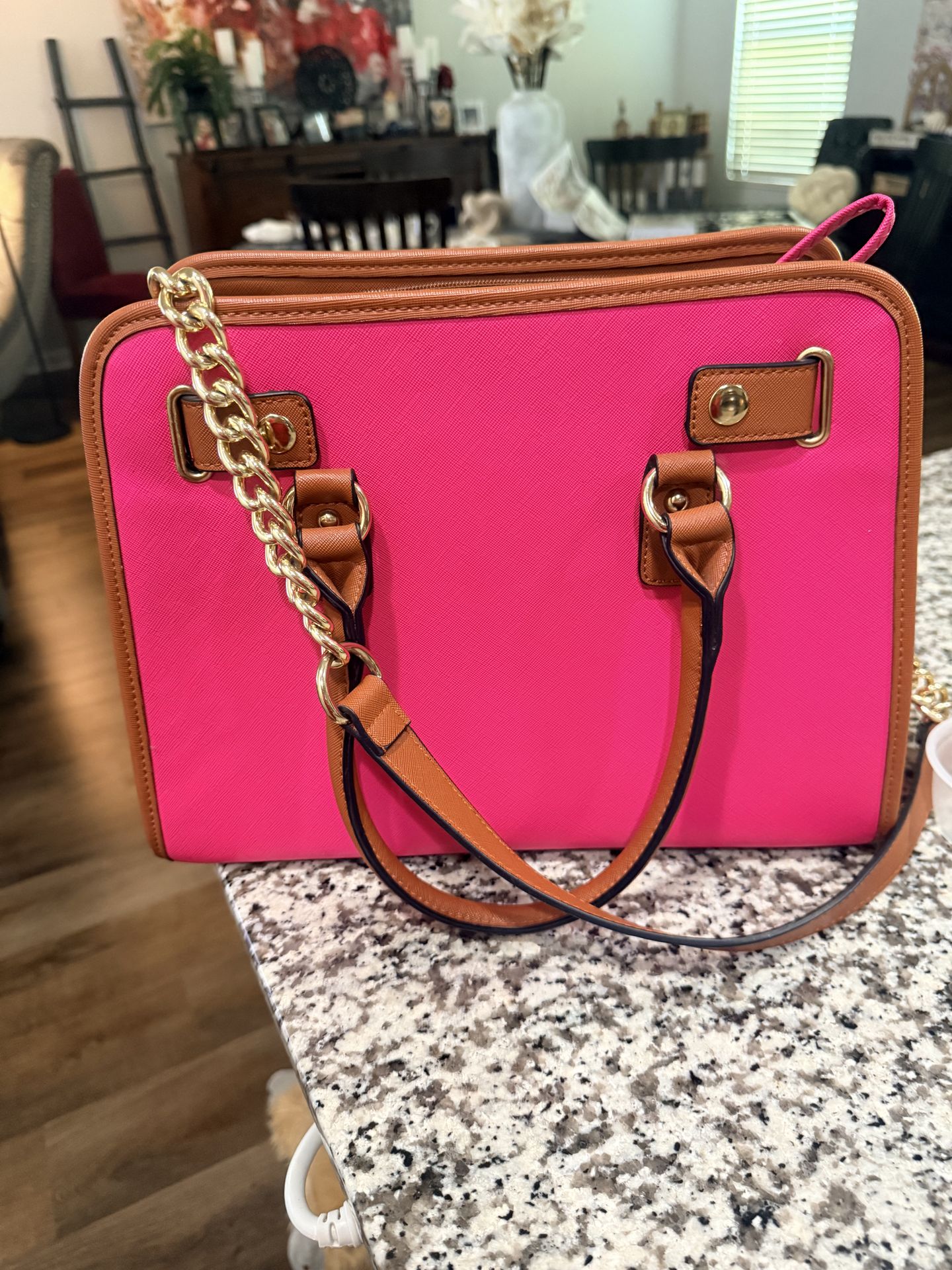 Two gorgeous purses, one hot pink, and one black and white available for purchase. Both brand new. Complement to any outfit.