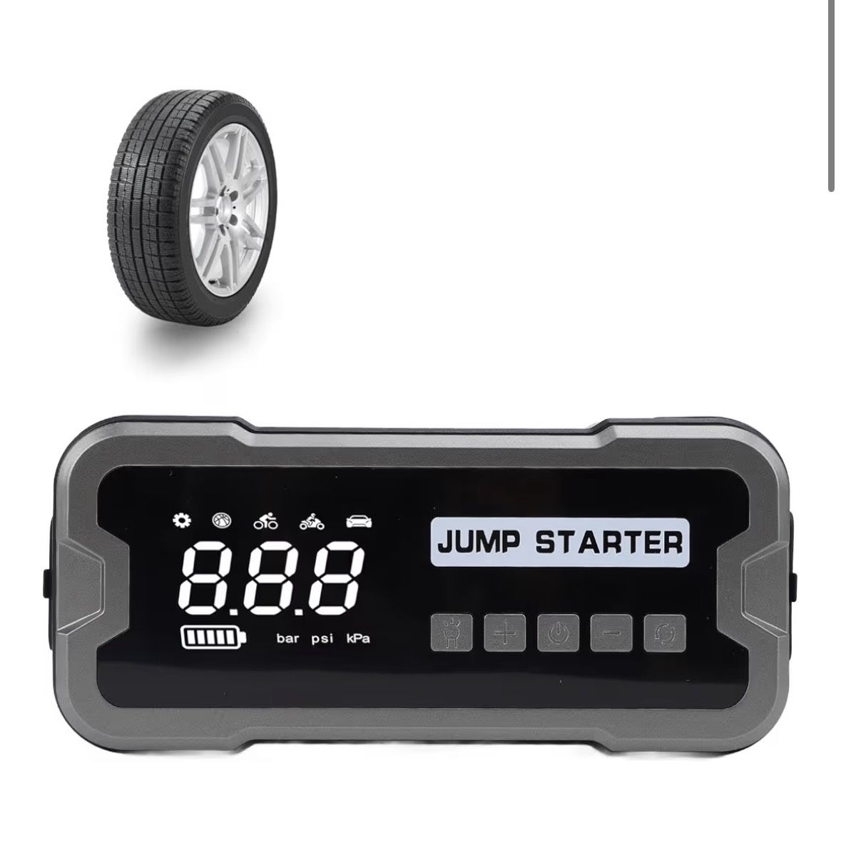 10000mAh Car Starter, 4000A Peak Power Starter with Smart Screen Display, LED Light and SOS, Multi Function Portable Tire Inflator for Car, Balls and