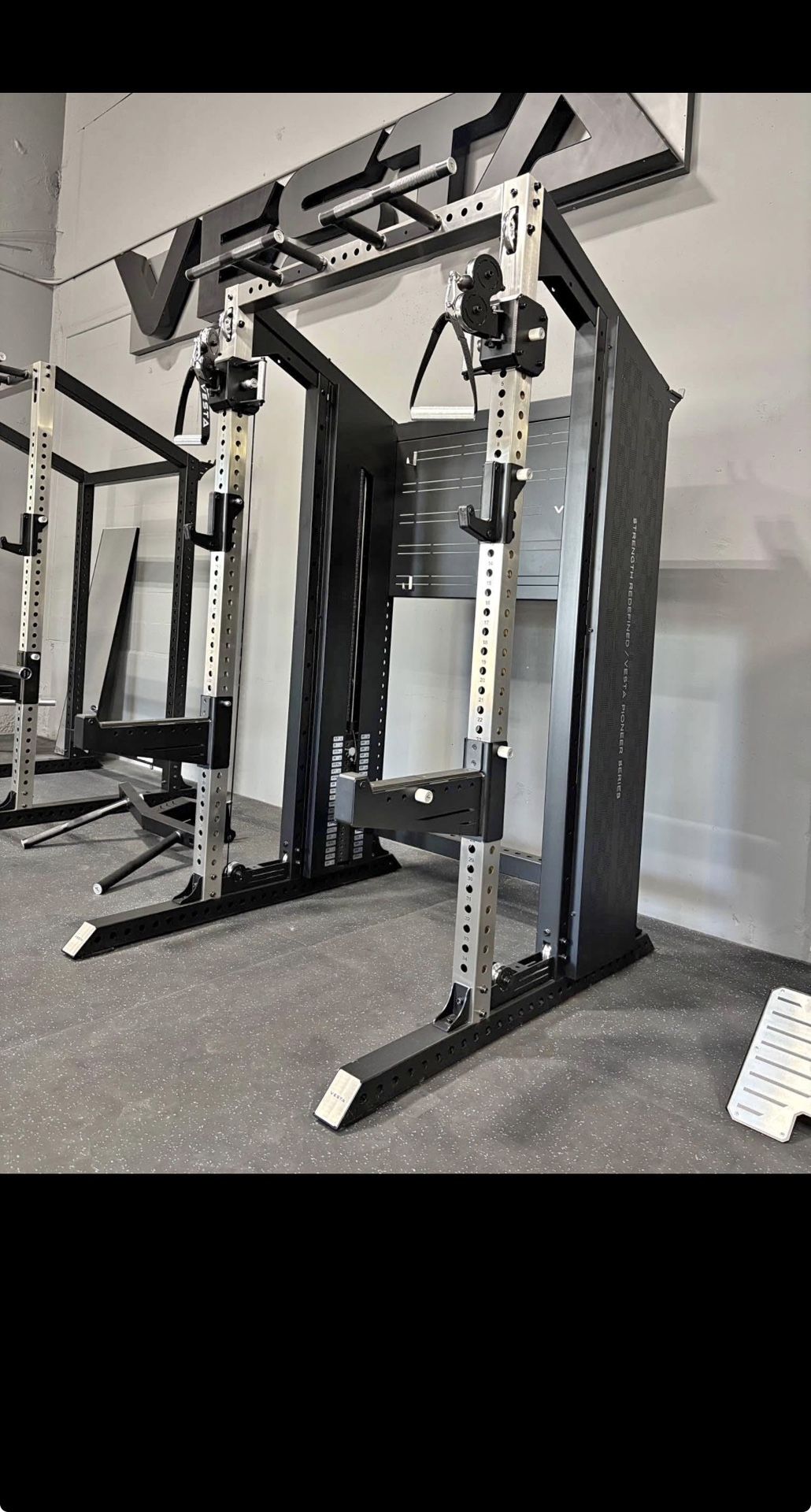 Check out our profile to see all of our gym equipment! We're open 7 days a week, 9am-5pm! We can deliver and install! V Accessories included: - One (1) Pair of J-Cups with Magnetic Pins - One (1) Pair of Spotter Arms with Magnetic Pins - One (1) Pair of Adjustable Pull-Up Bar - One (1) Barbell Storage Hook - One (1) Pair of Front Foot Extensions - One (1) Pair of D-Handles - Two (2) Weight Stacks of 200 lb - Bolts/fasteners needed to assemble Accessories you can ADD ON!! - Dip Bar - Hip Thrust & Leg Curl Attachment - Foot Plate - Multifunctional Bench - Magnetic Mirror V Specifications: - 3"x3" 11-Gauge Steel Construction - Brushed Stainless Steel Uprights - Laser-Cut Holes & Numbers - 5/8" Bolts and Fasteners - 34 Holes for Height Adjustments - 2:1 Cable Pulley Ratio - Aluminum Pulleys - Adjustable Functional Trainer Cable More details about accessories: - Knurled Pullup Bar - Spotter Arms with UHMW Polyethylene Liner