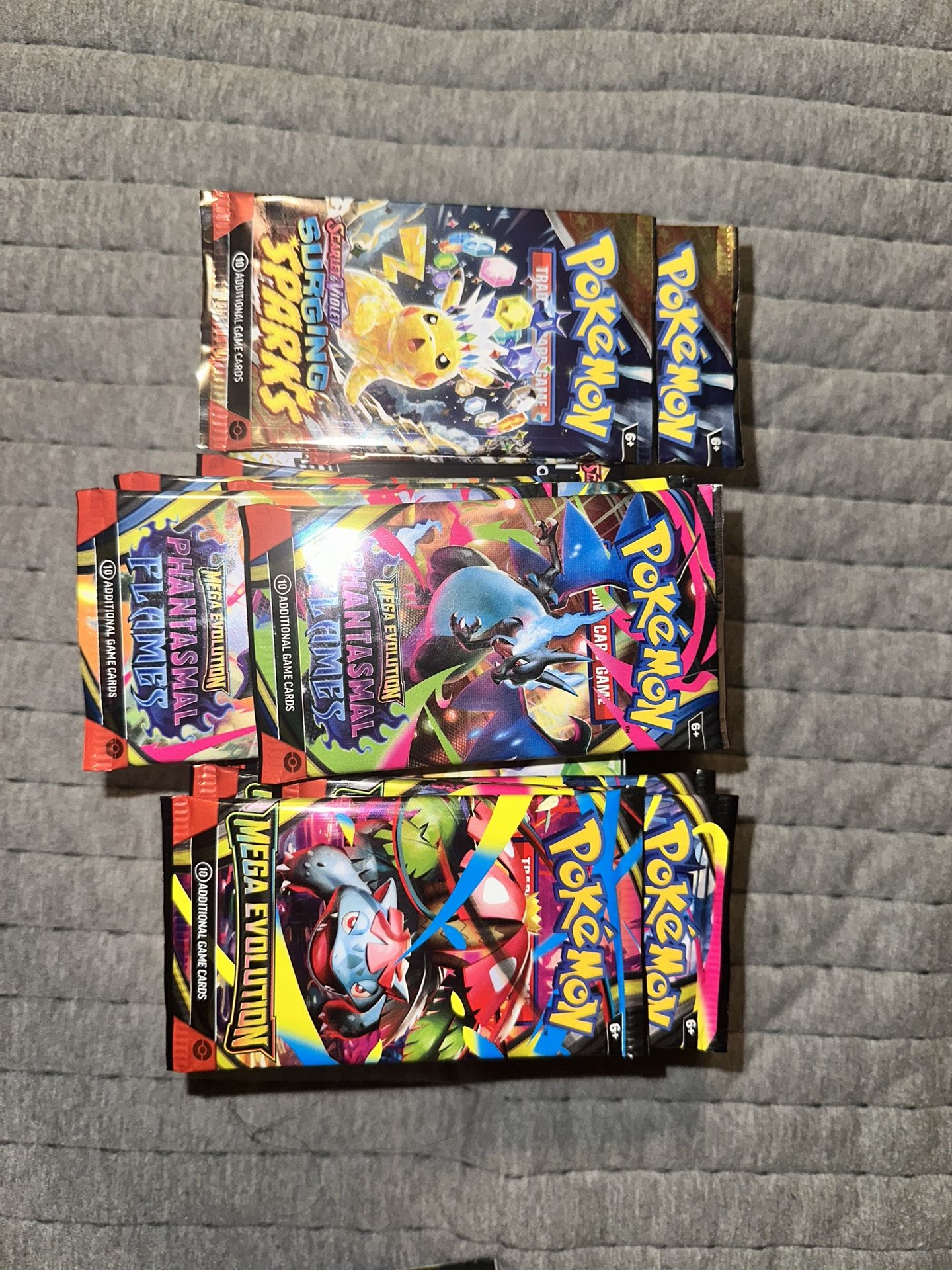 Single packs 2 available TCG: Surging Spark 9$each 5 available TCG: Mega Evolution Phantasmal Flames 9$ each 4 available TCG: Mega Evolution 10$ each (Offers and trades welcome)