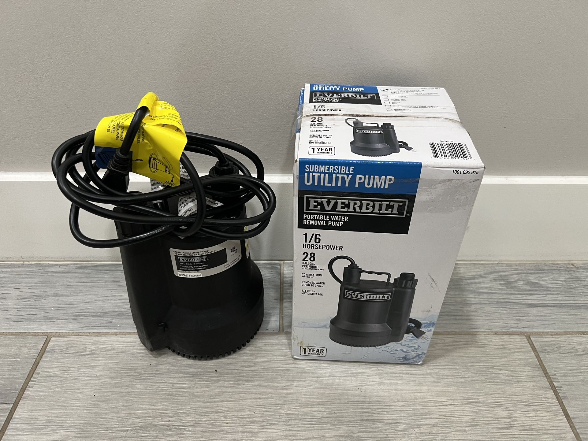 Everbilt SUP54-HD 1/6 HP Plastic Utility Pump in Good Working Order