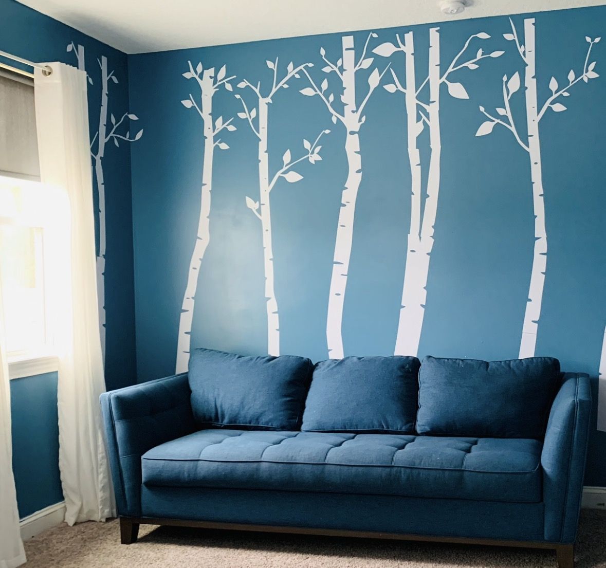 Navy blue sofa with minor wear and tear need to shampoo and look in brand new again.