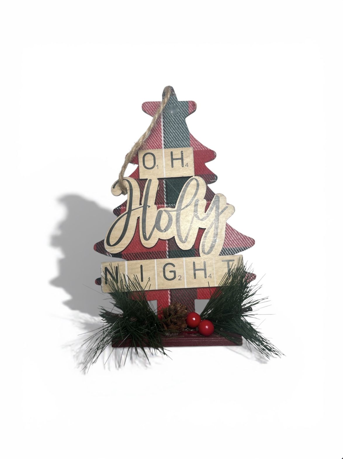 Aesthetic Plaid Festive Christmas Tree Wood Ornament