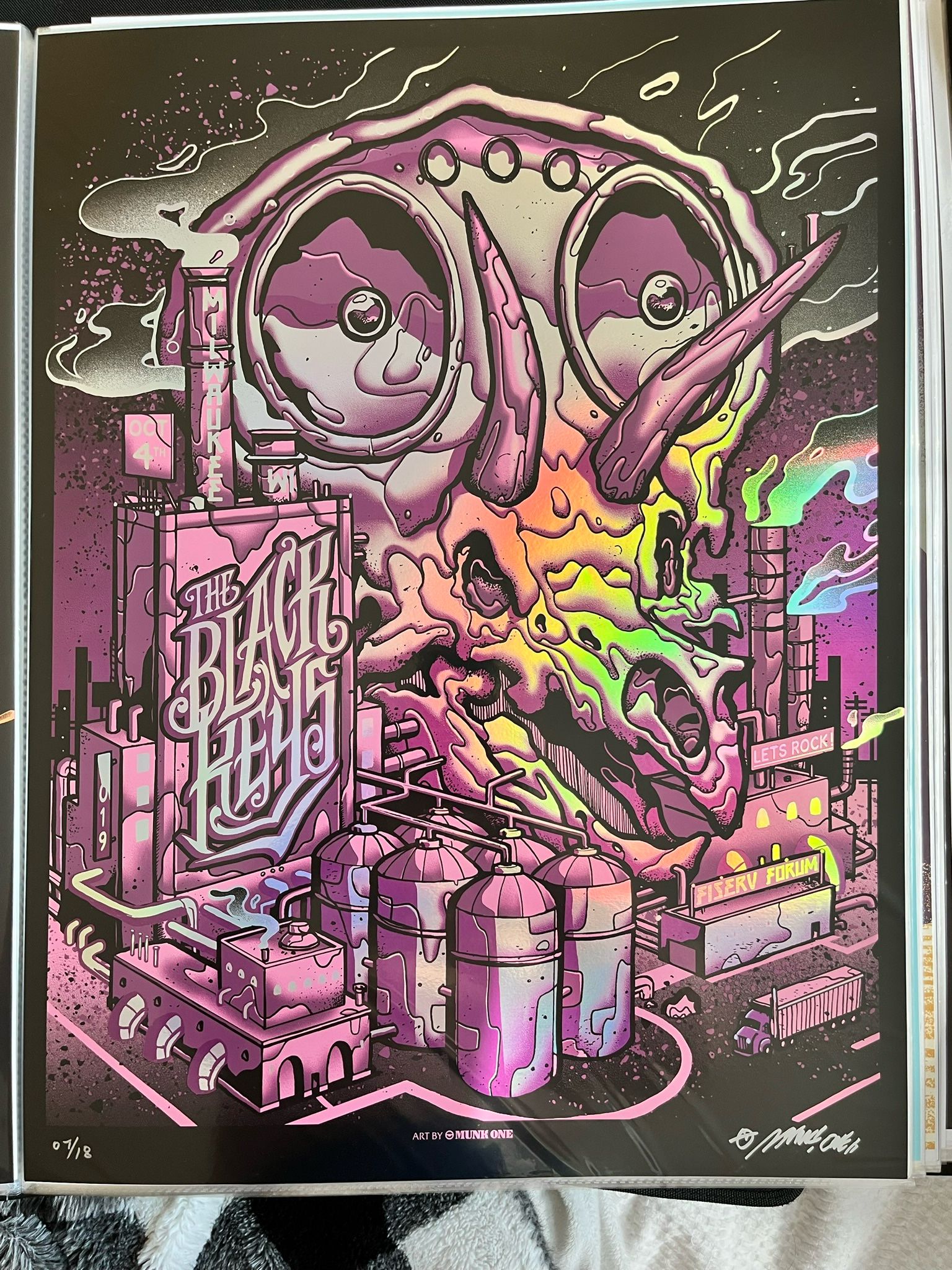 This is a 2019 A/P Rainbow Foil poster from The Black Keys “Let’s Rock” tour in Milwaukee, Wisconsin. This rare and hard to find poster is autographed by the artist and numbered #7/18. This is a must have for any Black Keys fan.