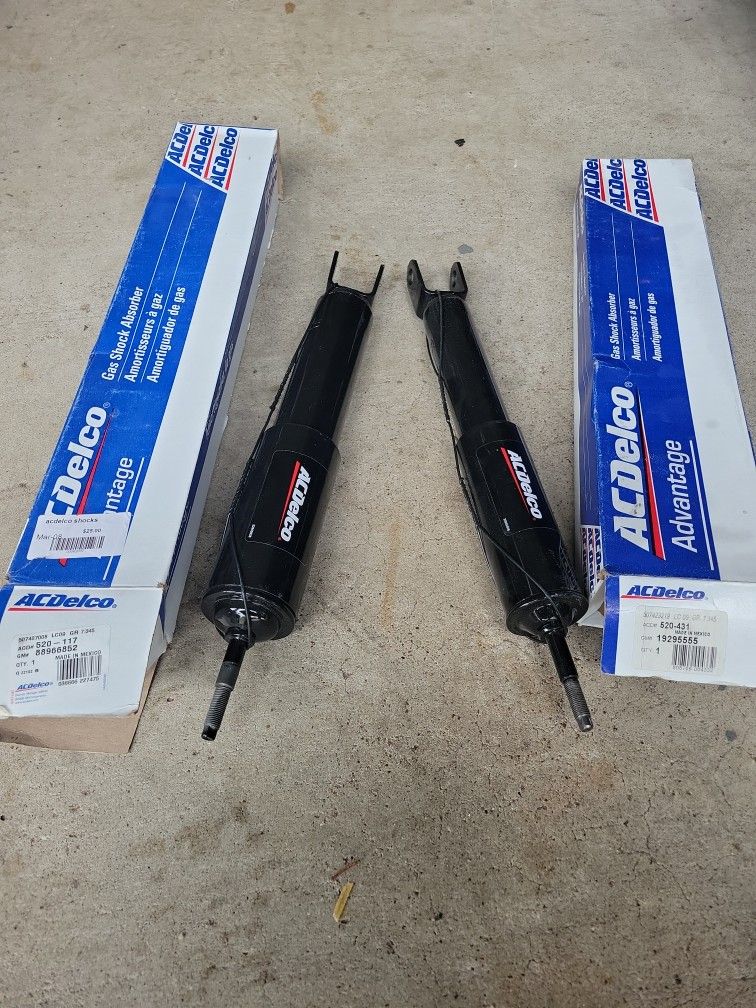 new shocks, $25 each... for silverado sierra avalanche tahoe yukon suburban....research which part # you need for your vehicle..... *part 520-431, 2 remaining... *part 520-117, 6 remaining....