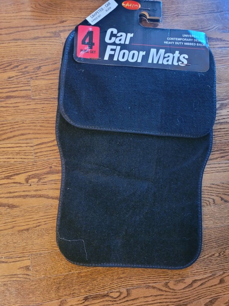 * New universal carpeted auto car mats (4 piece set): $12 - Black carpeted car floor mats - Dimensions: Front 25"L x 17"W. Rear 17" x 12"W. - Rubber nibbed backing to prevent shifting. Picture 3. Located in Westminster near I-25 and 120th Ave (x223). No holds. Cash only please. Contact Tom. Please view my "seller's profile" link shown