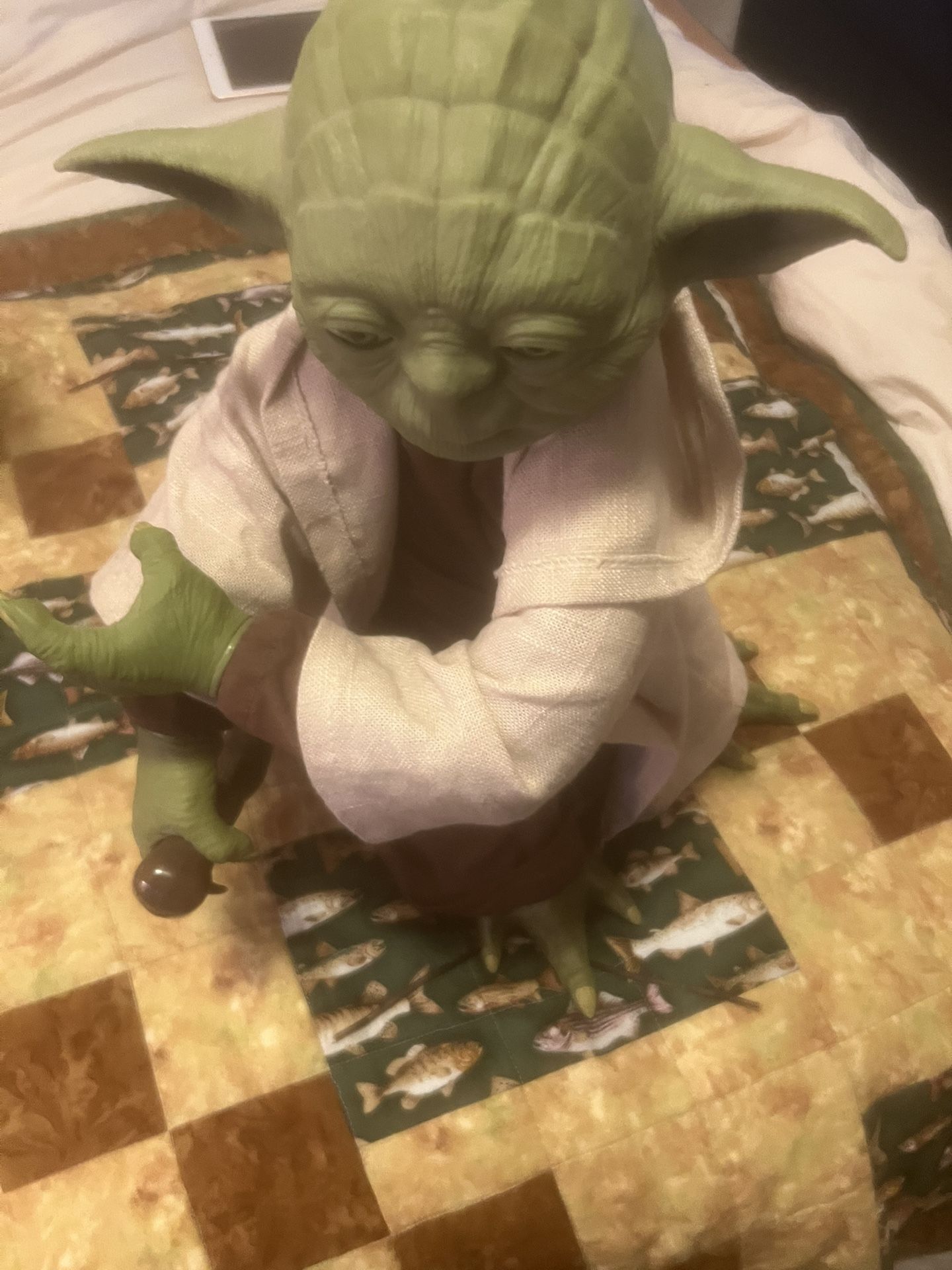 The Legendary Yoda action figure by Spin Master is a 16-inch tall collectible inspired by the iconic character from the Star Wars franchise. This detailed figure is a must-have for fans of Yoda and Star Wars: Episode VI – Return of the Jedi. With its vintage design and connection to the beloved TV show Star Wars: Clone Wars, this toy brings the legendary creature to life for fans of all ages to enjoy and display. Perfect for collectors and enthusiasts alike, this action figure captures the essence of the wise and powerful Jedi Master Yoda. This item comes from a smoke free home and is in extremely great condition. Comes with staff only.