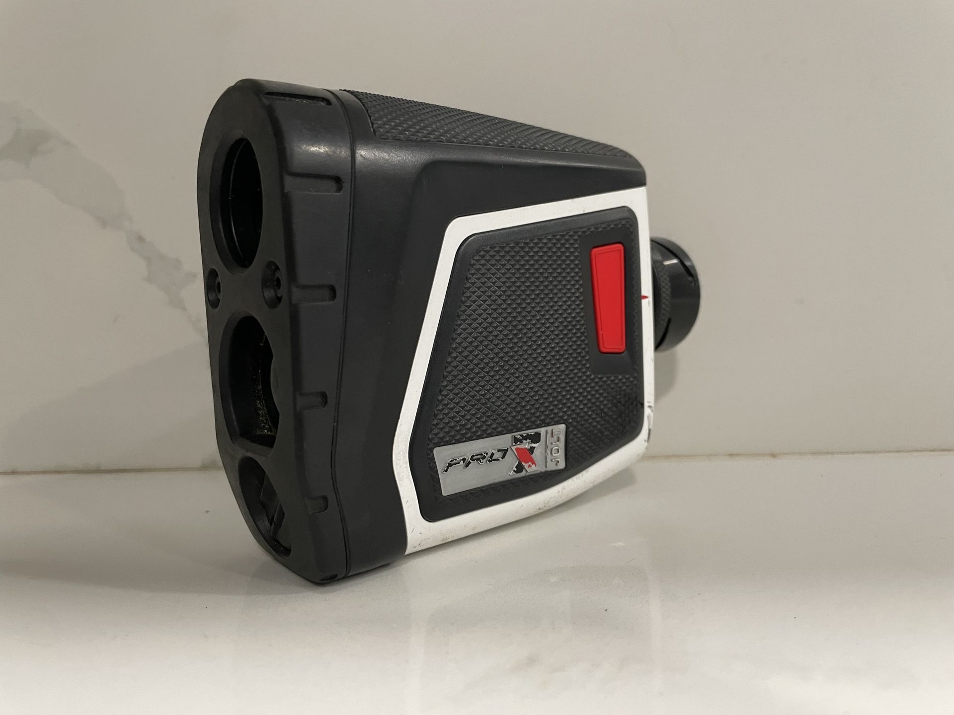 READ POST: Functional Bushnell Pro X2 JOLT golf rangefinder. Range finder works but occasionally have to hit side to get it to turn on again. Button is worn. Has 7x26 magnification and waterproof coating.