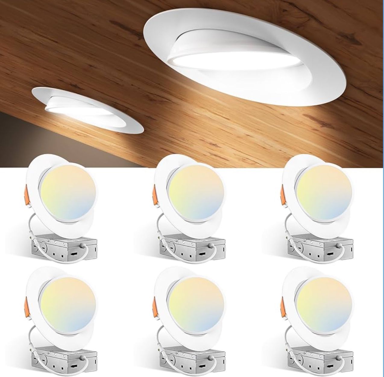 Amici 6 Pack 6 Inch 5CCT Gimbal LED Recessed Lighting, 360°&90° Adjustable Eyeball Directional Downlight, Dimmable, 2700K/3000K/3500K/4000K/5000K Sele