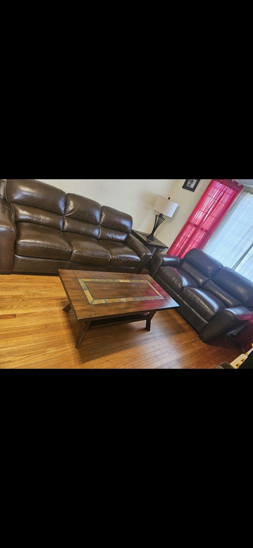 100% leather sofa, loveseat. Coffee table and end table in excellent condition. Well taken care off . 998.00 obo