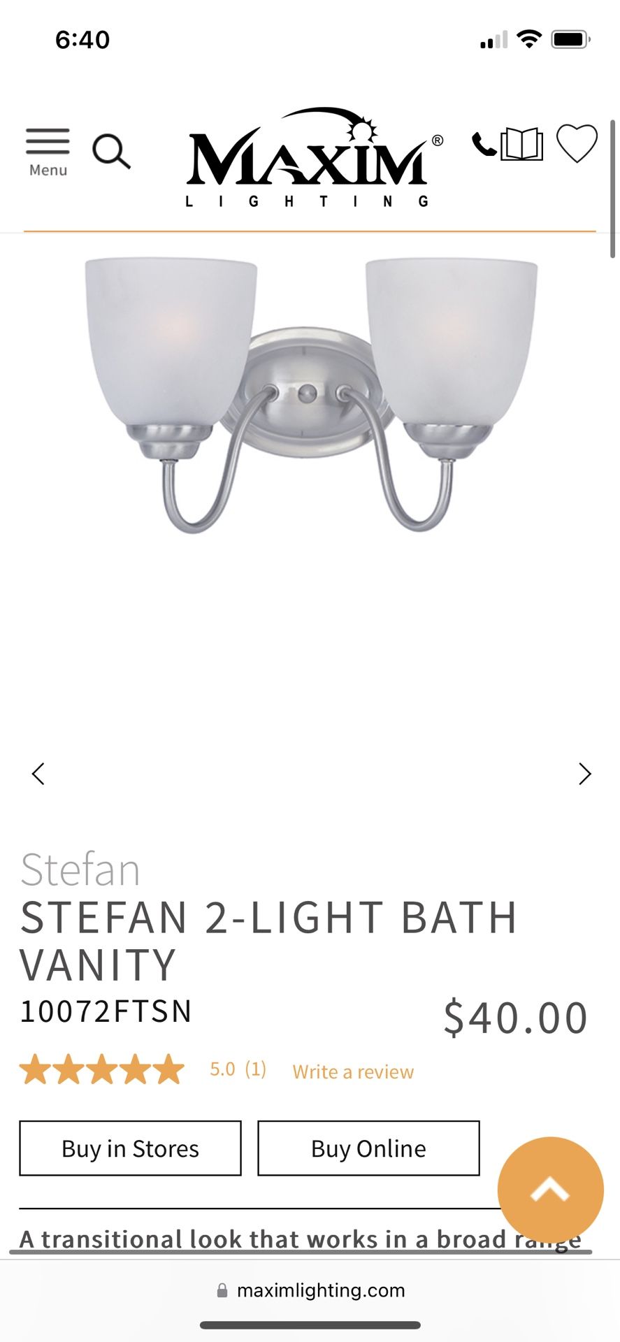 Two (2) 2-light bath vanity sets - four (4) sets of lights total Retails $40 for each 2-light bath vanity set Selling for $25 for each 2-light bath vanity set (have 4 total) NEW, NEVER USED BEFORE - only been stored underneath the sink