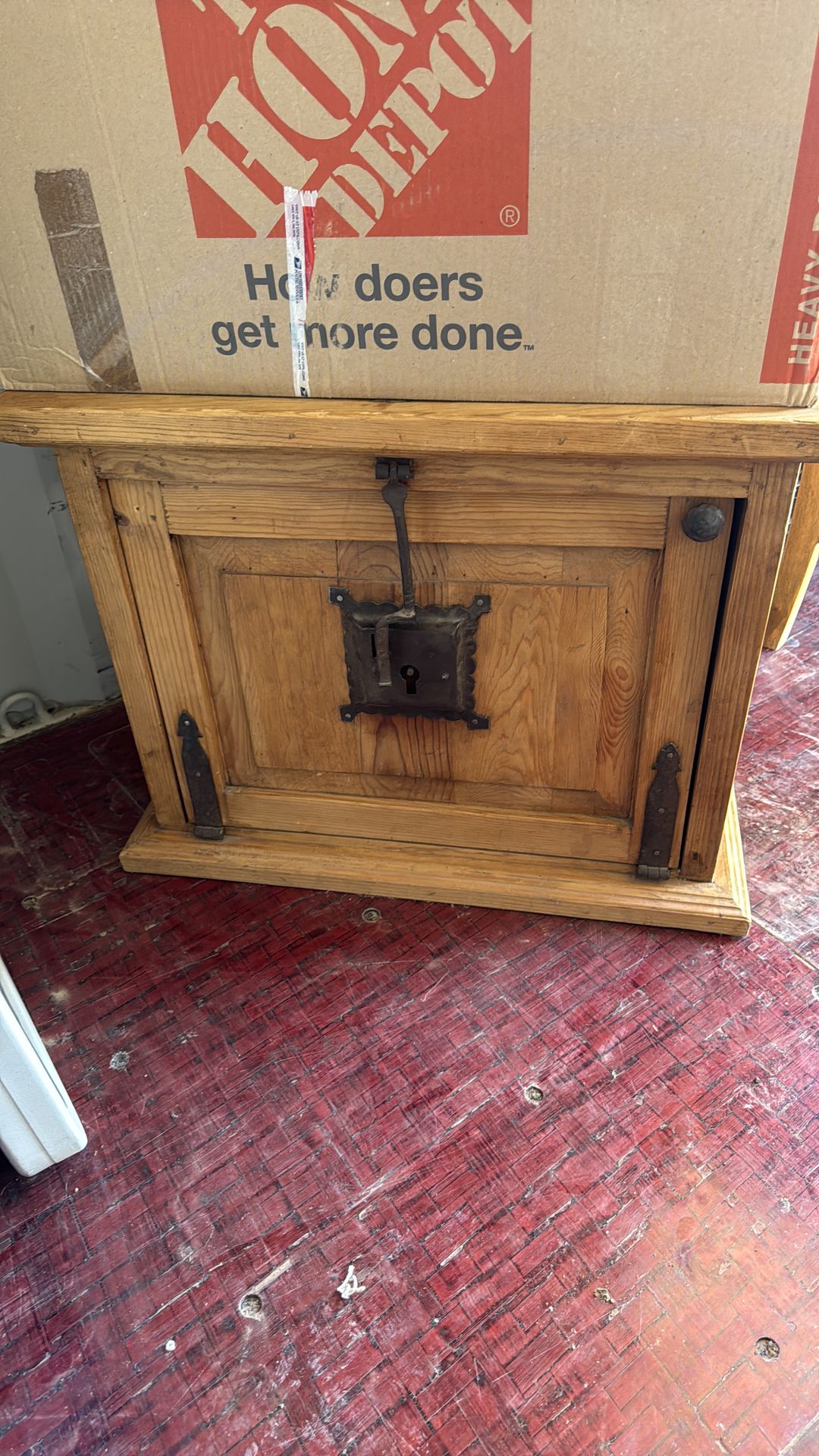 I had my tv on top of this with my VCR inside it with the wires going out the back through the rough cut hole shown in the photos. Great for kids room game station. 22 inches tall 28 inches wide 20 inches deep Typical style as made in Mexico. Currently located in New River but I travel to Sun City almost every day and an appointment can be made in advance for me to bring this with me so we can meet up at my parents apartment located at 111th Ave and Grand Ave in Sun City