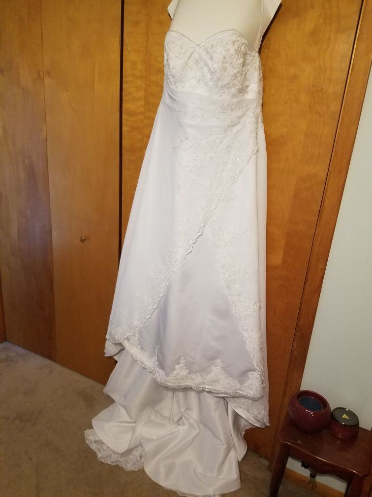 Size 16W Only worn for alterations Double busseled Sweetheart neckline Corset, A-line Bought but got pregnant so no longer fit. Paid $400 for the dress and another $300 for alterations.