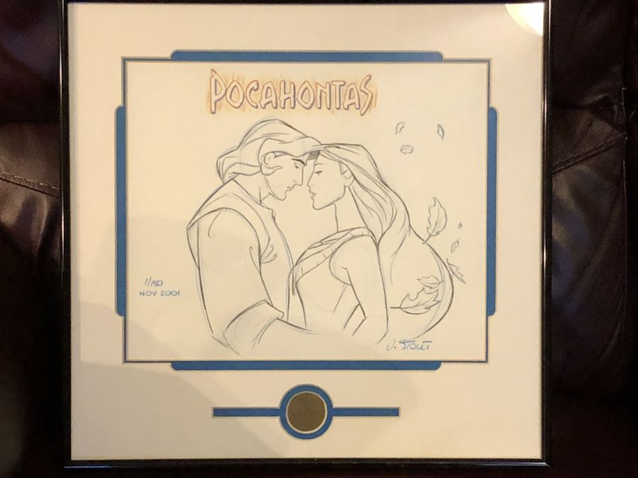 Disney Pocahontas hand drawn sketch #’d /150. Originally purchased for $150. Roughly 15”x15”.