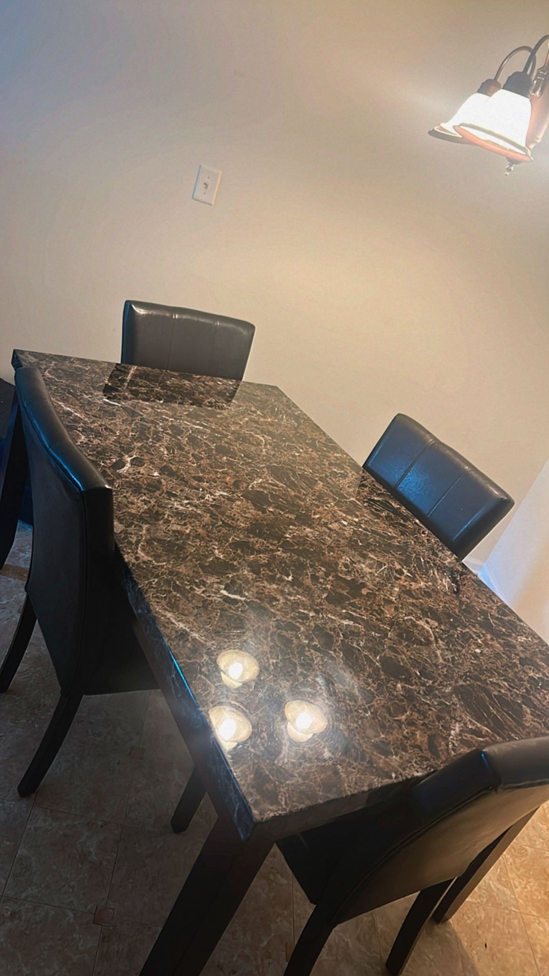 Four chairs. No harm done to any part of the TV able nor chairs. Come get it it's yours