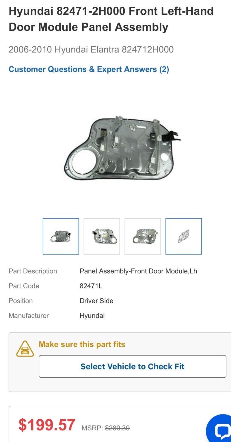 OEM 82471-2H000 Front Left Door Module Panel Assembly 2006-2010 Hyundai Elantra