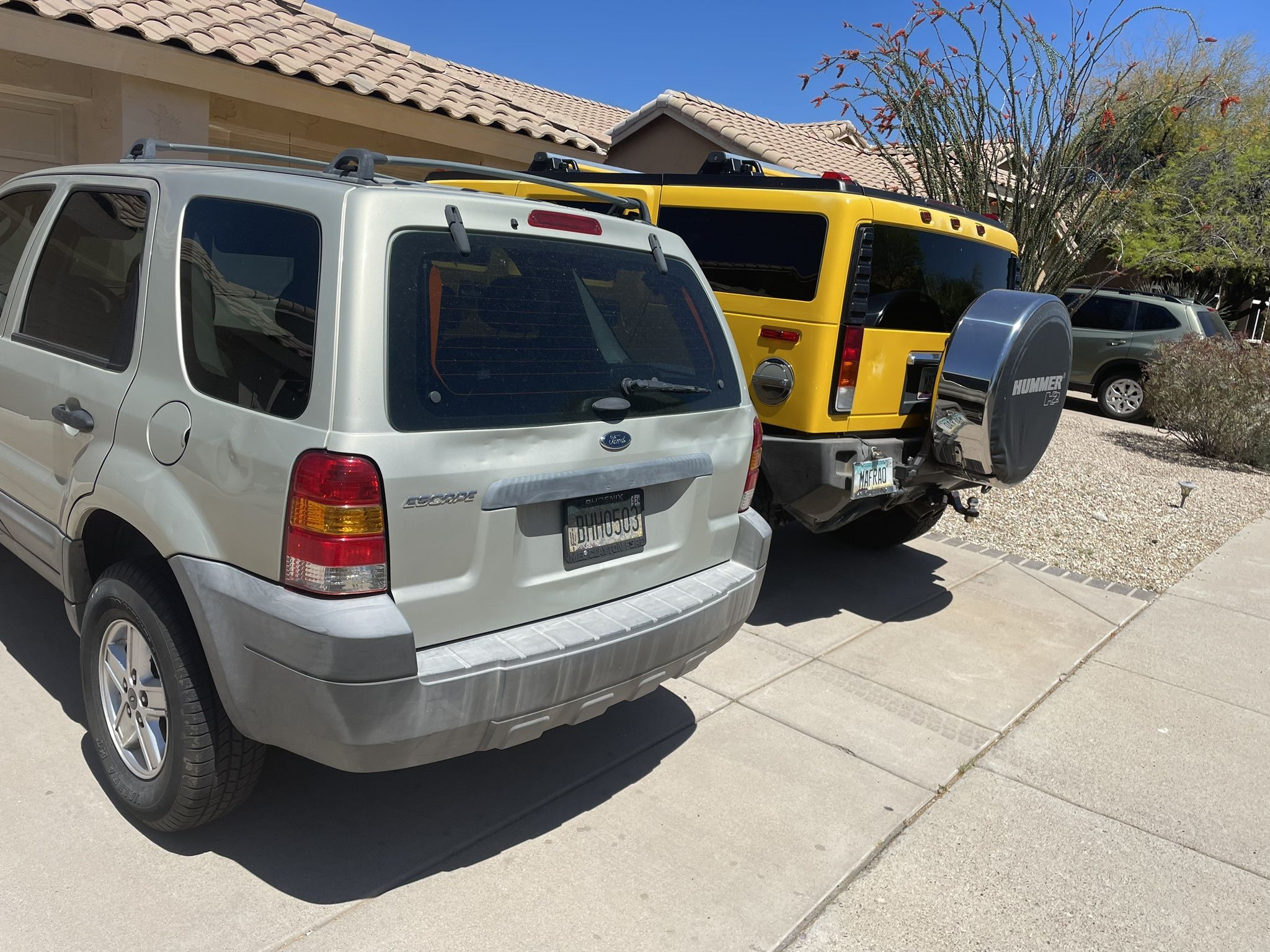 Yellow H2 2004 is running good,!(approx 125k) Champagne 2005 Ford Escape (approx 125k) Asking price- Escape $ 6999.00 H2 $ 35000.00 LT tires chrome double Carborator- A lotta of extras,! Spare tire outside with cover,!