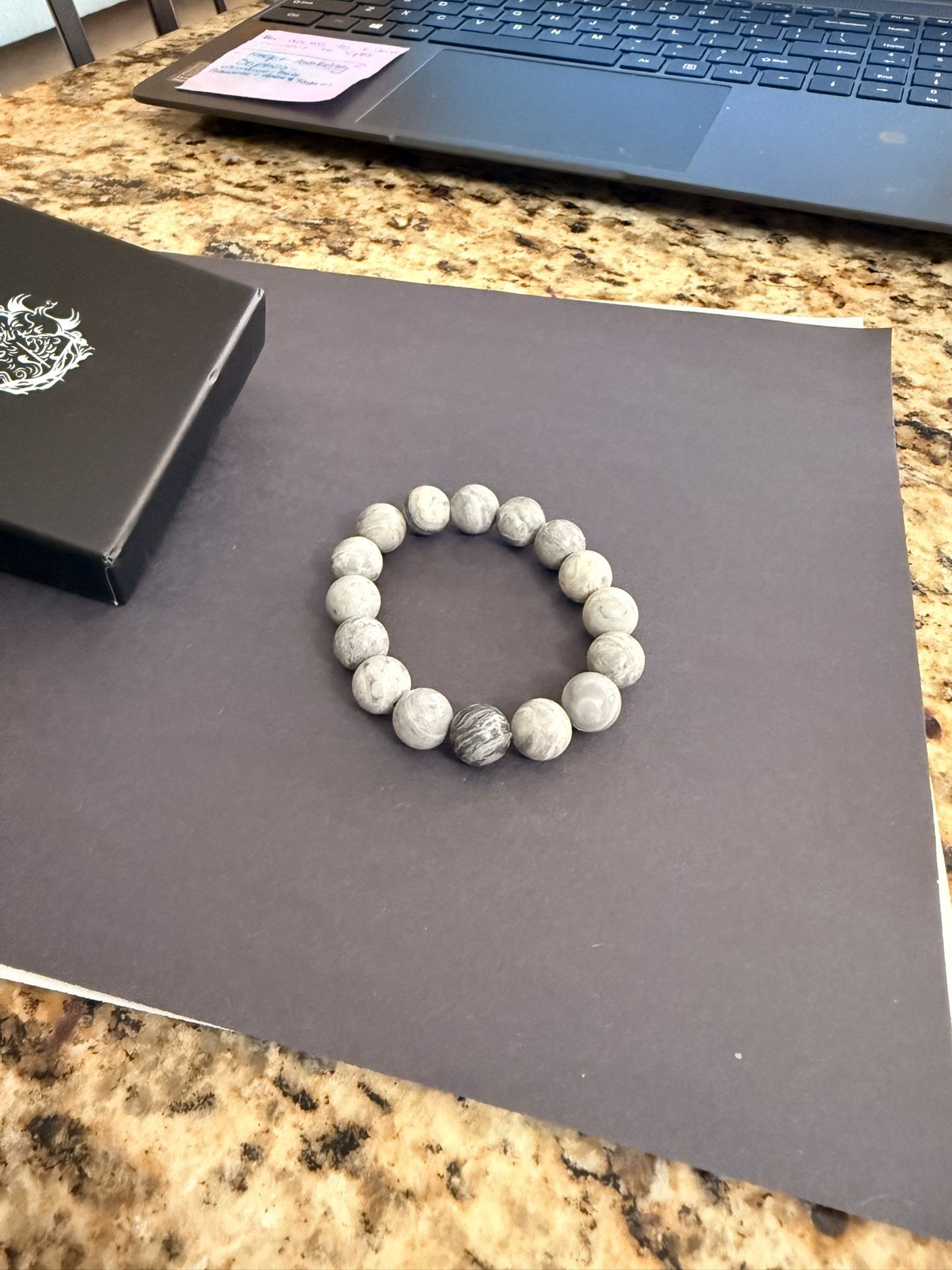 Large beautiful Natural stone “Howlite” bracelet. About 7-8 inches 8-10 mm (Guessing)
