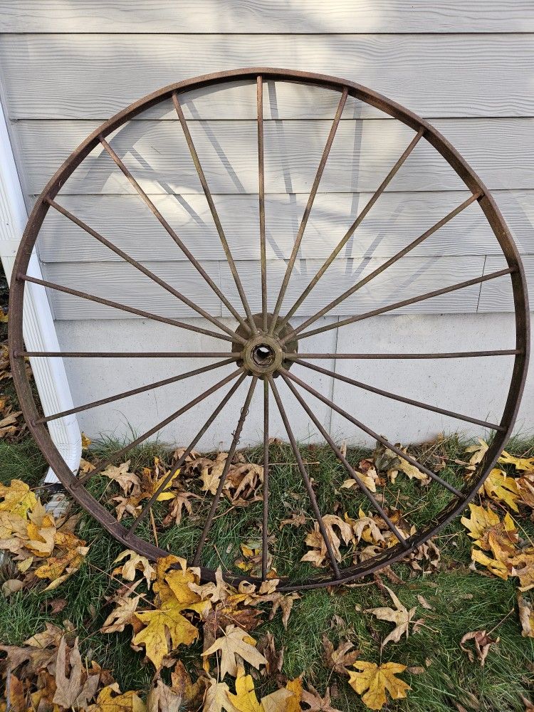 Antique Tractor Wheel. Made of iron, 54 inches in diameter. Cash only please.