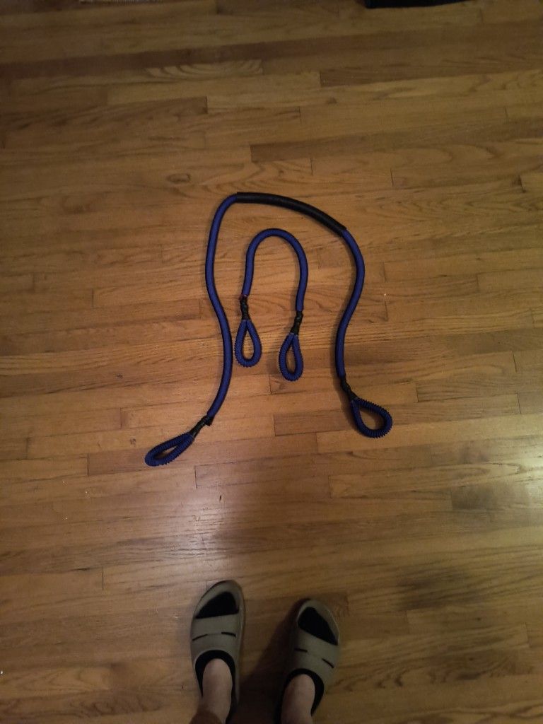 two different sizes one medium tension (short one 30" with no tension), one hard tension (long one 66" with no tension) great replacement for plastic PT bands or portable workout. located in North park sold as set