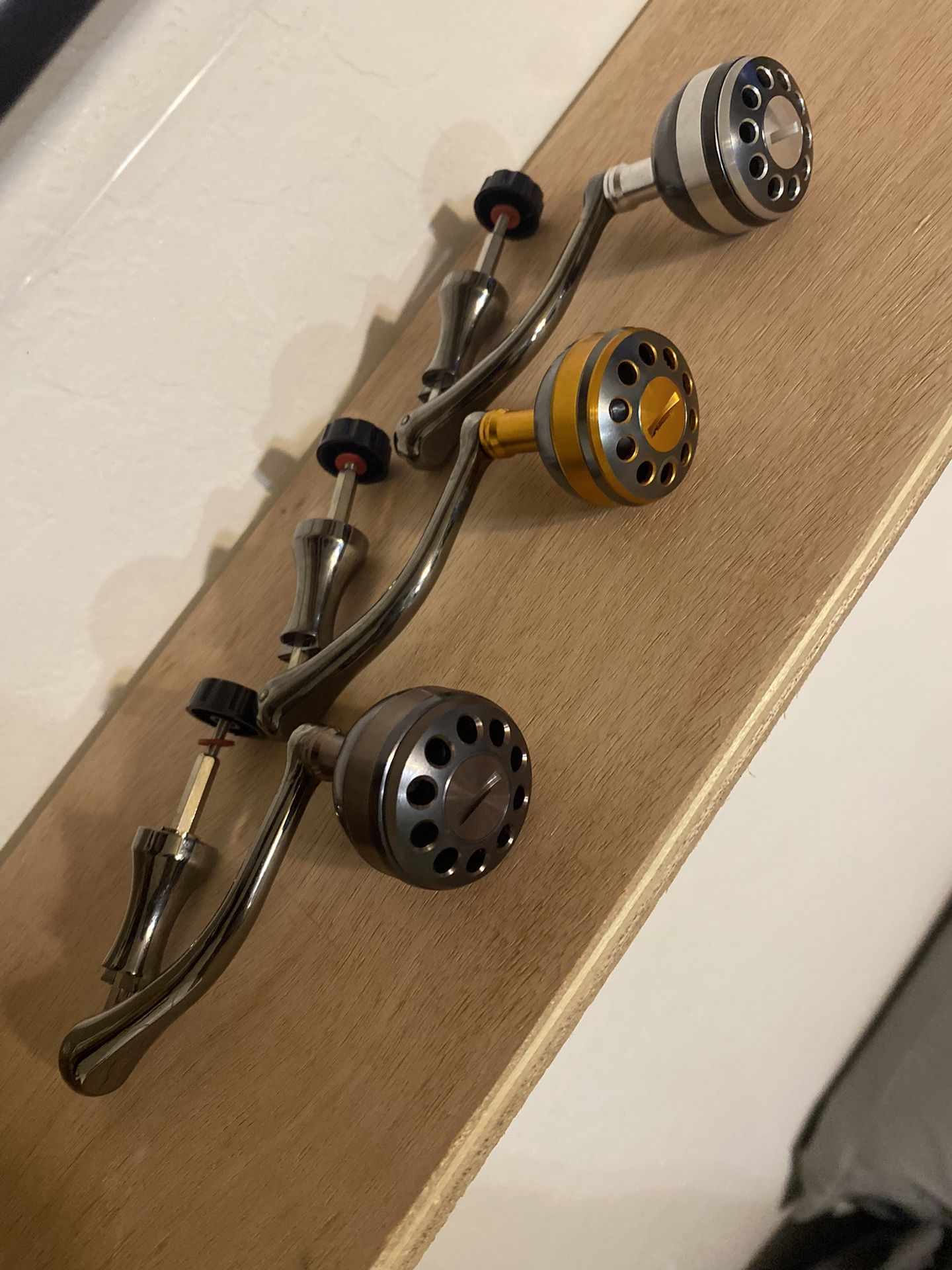 All metal, big ball handle that rolls while you crank, Photo for example, Way better than that Manini T handle style. Comes in different colors and sizes (L and M) can also order small if need. check dimension before you buy or bring your reel. 25$ea. firm. Lmk🤙🏾