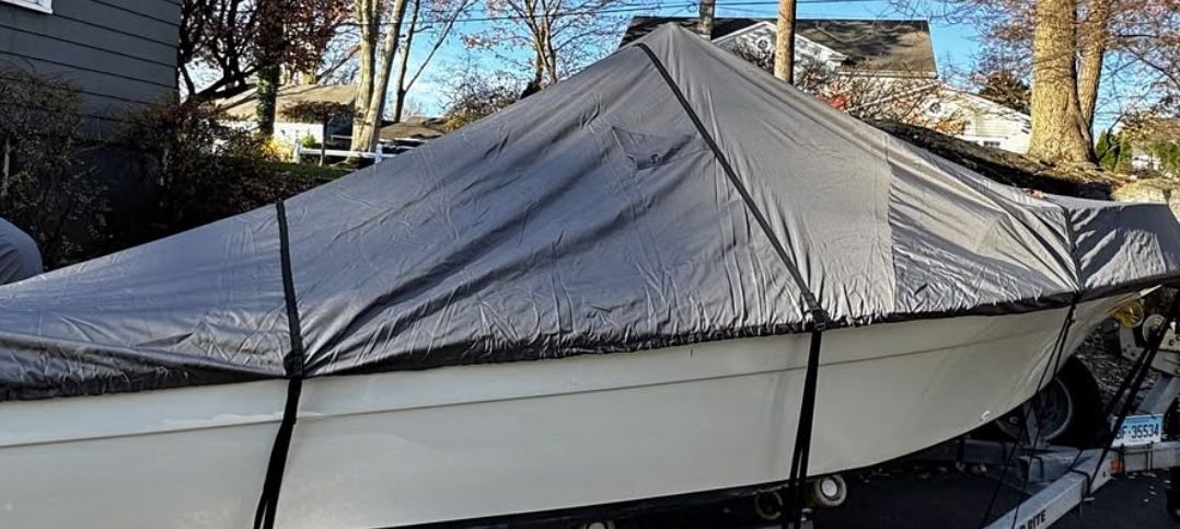 FOR SALE — Extra‑Large Boat Cover (Fits Up to 18 ft Boats) Up for sale is a heavy‑duty, weather‑resistant boat cover designed to fit boats up to 18 ft. Perfect for winter storage, trailering, or year‑round protection. Details • Marine‑grade, waterproof fabric • UV‑resistant and mildew‑resistant • Strong tie‑down straps + elastic hem • Reinforced stitching at stress points • Works with V‑hull, center console, bass, and similar boats • Clean, no rips or tears Why It’s a Great Buy Skip the yearly shrink‑wrap costs — this cover is reusable, durable, and built to last. Price $99 Location Near Freeport, NY