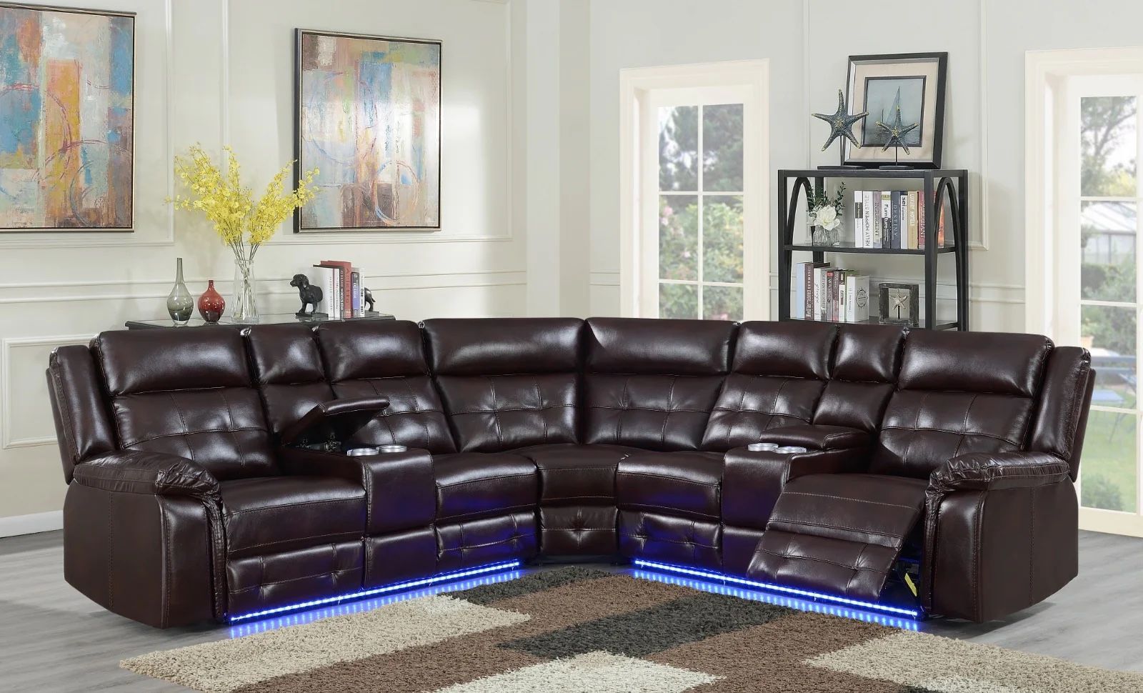 βΌοΈSaleβΌοΈ3PC Led Brown Leather Recliner Sectional