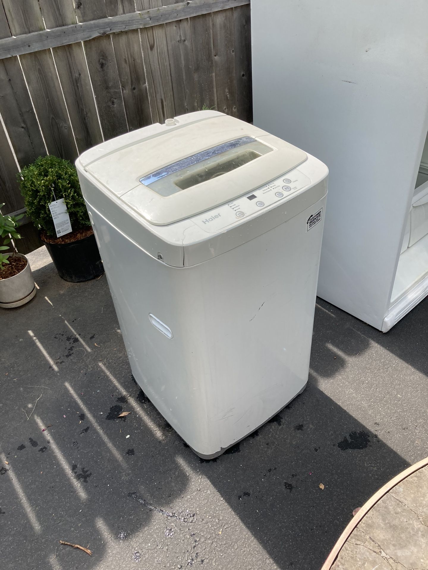 Haier 1.5 Cu. Ft. Portable Washer and Dryer with Stainless Steel Tub 35.5 x 20.5 x 20 Good working condition Connects with kitchen faucet and sink or similar fixtures Good for small houses/apartment with no laundry facility. No delivery available. $100 OBO See more details here Haier HLP24E 1.5 cu. ft. Portable Washer with Stainless Steel Drum and Pulsator Wash System https://offerup.co/faYXKzQFnY?$deeplink_path=/redirect/