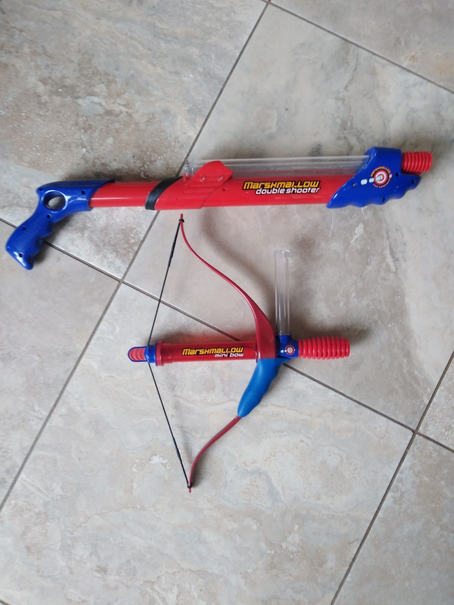 Includes double barrel long gun and mini bow. Both shoot mini marshmallows. Clean and from Non-Smoking Pet-Free Home