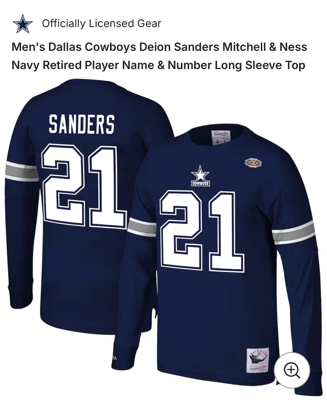 DEION SANDERS LONG SLEEVE JERSEY 21 COWBOYS USED LIKE 3 x times EXCELLENT CONDITIONS