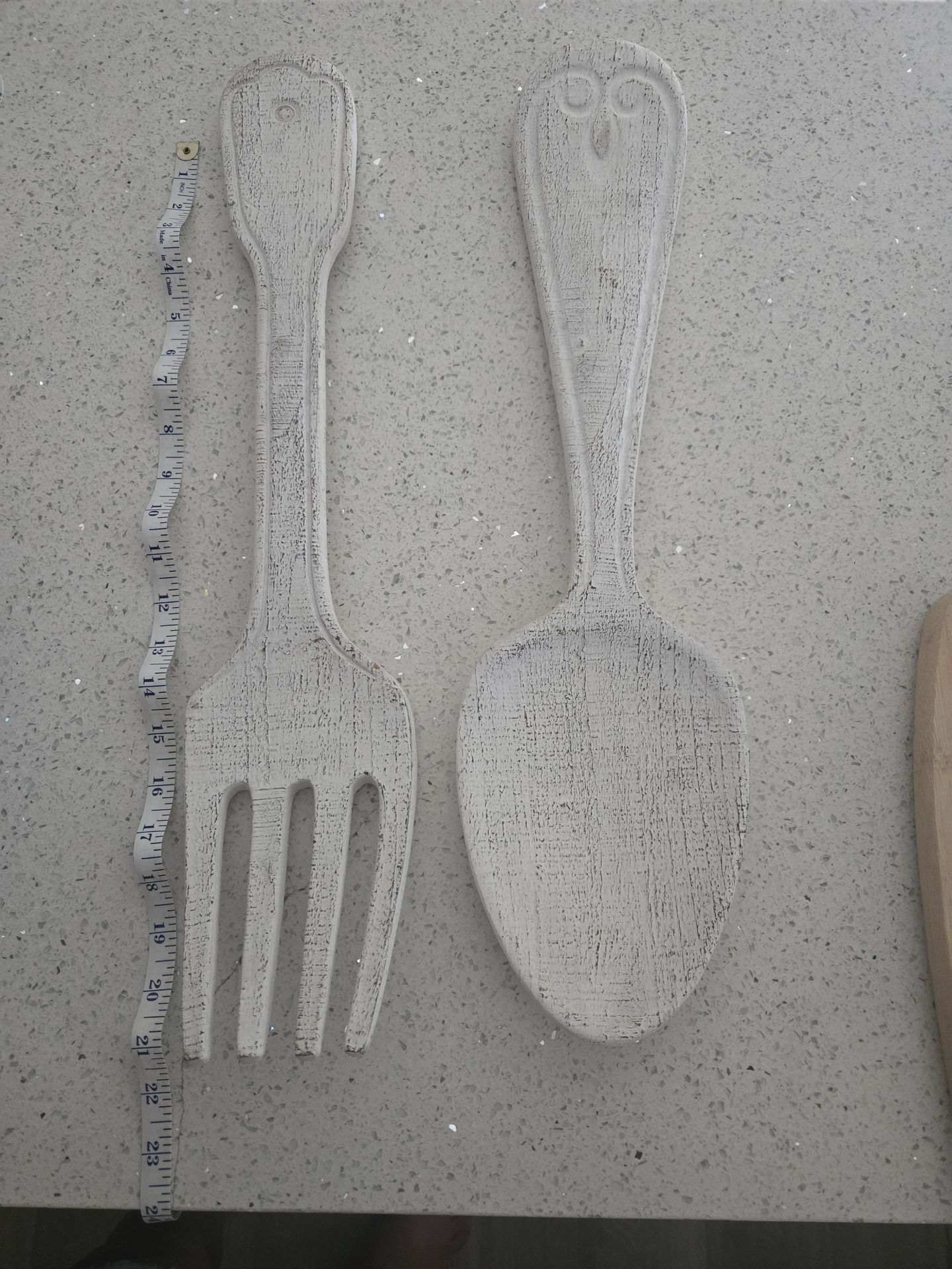 Fork and spoon measure about 21 inches long. Great for kitchen decor.
