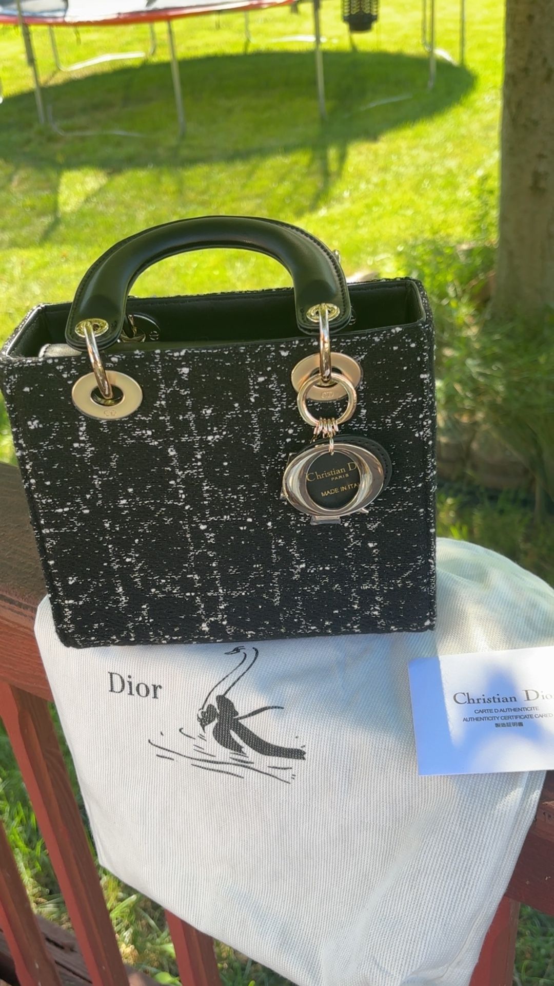 Black and white canvas lady Dior medium size