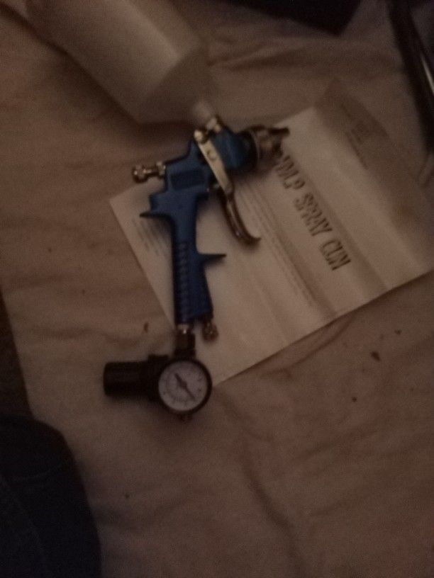 Compressed air pressure sprayer with pressure gauge and paint canister. Comes in box with instructions.