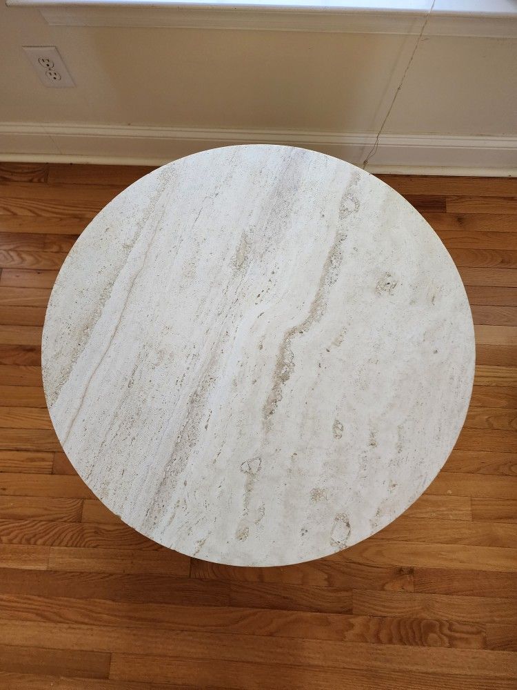 Very sturdy round side table Side slide out drawers Granite top.