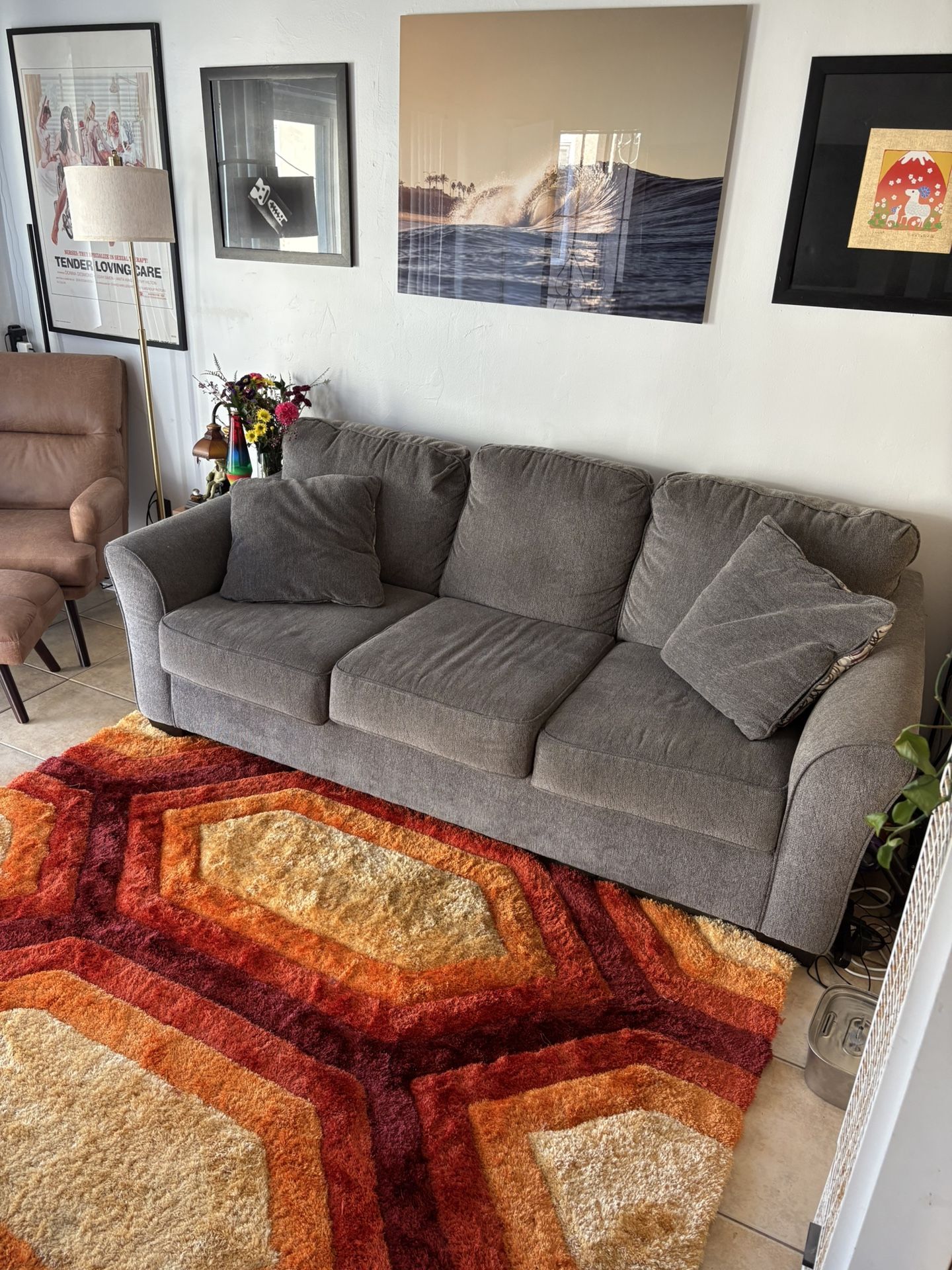 This is barely used. Got it from a large house from an unoccupied room. Only had it a few months. No damages. Comes with 2 matching pillows pictured. Will deliver for $50 extra
